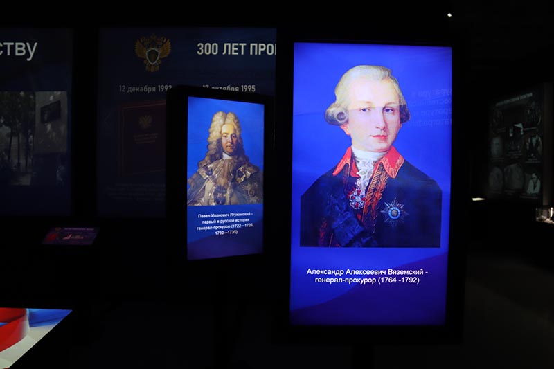 Открывает выставку раздел о начале работы прокуратуры, учреждении службы русским императором Петром I и назначении первым прокурором графа Павла Ягужинского. Посетители могут узнать о значимых личностях, возглавлявших Прокуратуру России и Кубани за три века. Выставка рассказывает о происхождении герба Прокуратуры России, о появлении и трансформации форменной одежды и знаков различия.