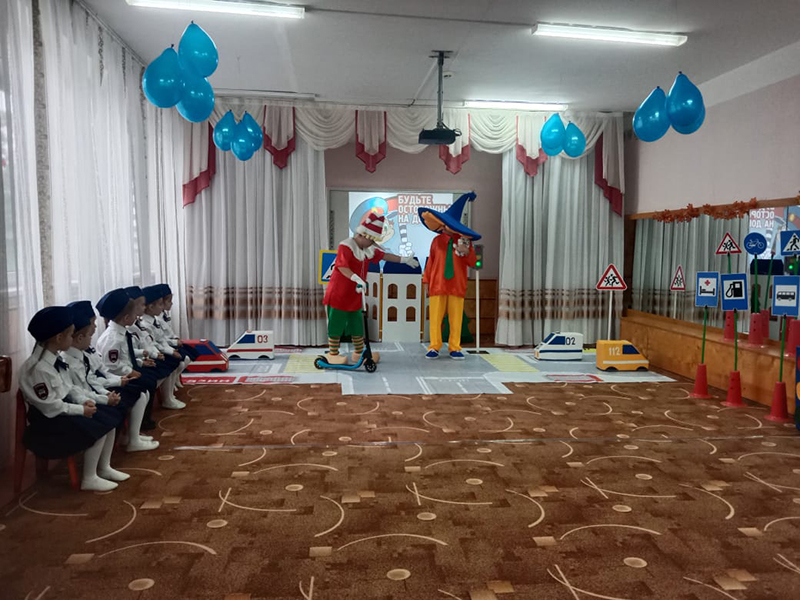На праздник была приглашена инспектор ОГИБДД по пропаганде безопасности дорожного движения Татьяна Беляевская. Малыши учили Незнайку правилам поведения на проезжей части. Вместе со сказочными героями повторили Правила дорожного движения.