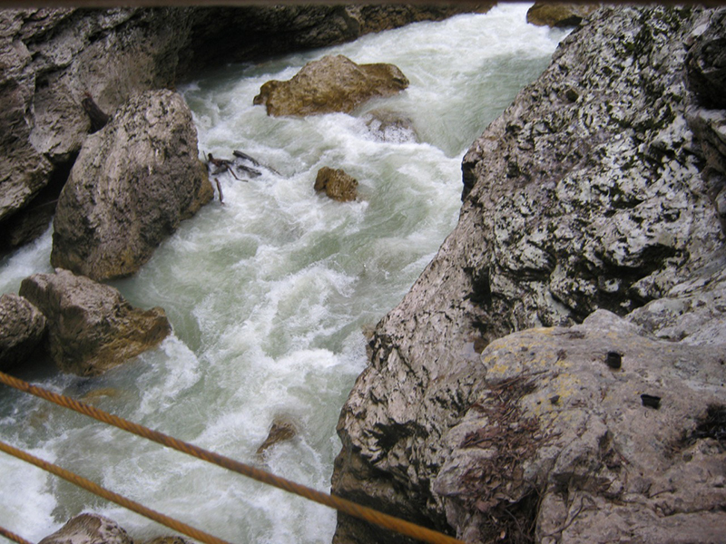 Белой. Честно говоря,можно больше никуда не ходить, а просто стоять на подвесном мосту, закрыть глаза и просто слушать бурлящий бело-голубой поток...