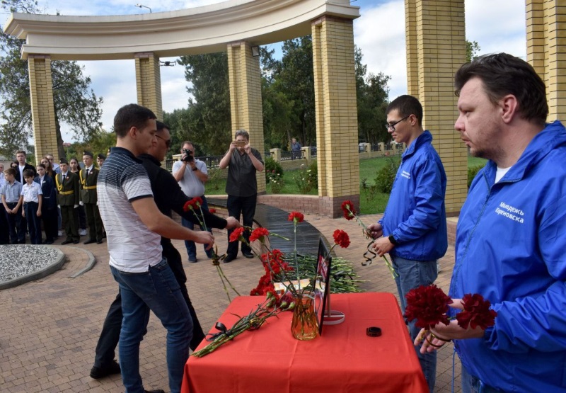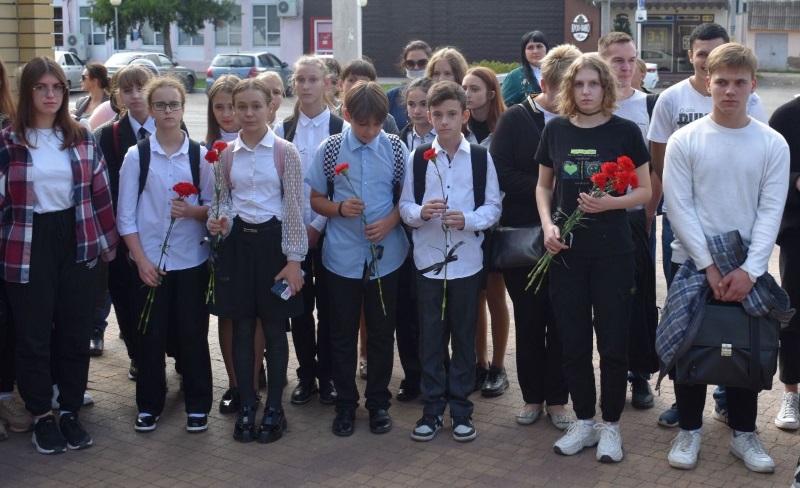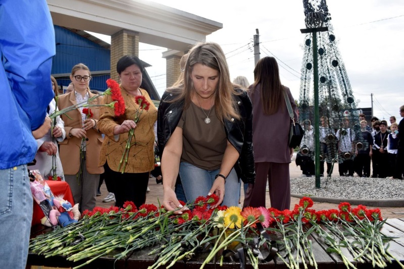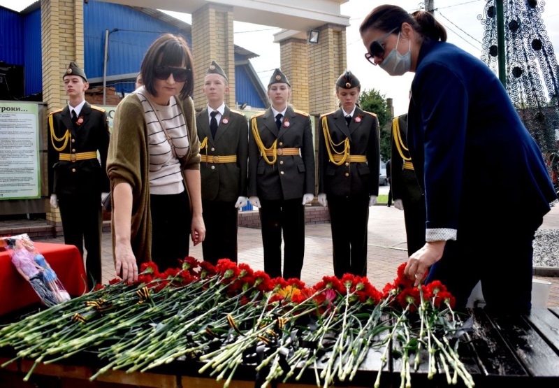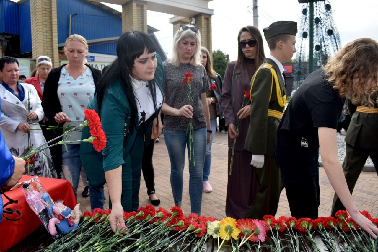 Кореновские школьники, сотрудники администрации города и района, активисты Молодежного центра, депутаты собрались у входа в центральный парк Кореновска, чтобы почтить память невинных жертв трагедии.