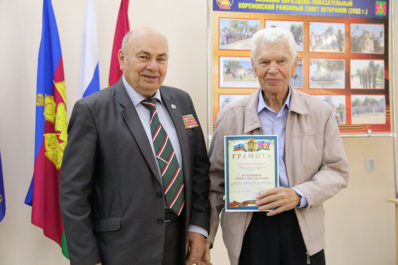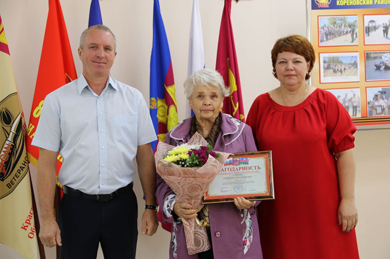 Благодарностью главы муниципального образования Кореновский район за активную жизненную позицию и военно-патриотическую работу среди молодого поколения Кореновского района, и в честь Дня пожилого человека награждены: