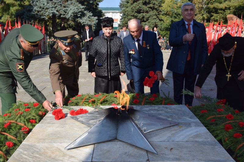Нежно, горестно заиграл дудук — вековая армянская лирическая мелодия звучала над станицей Сергиевской. К Вечному огню возлагали гирлянды памяти. Затем с цветами пошли гости и жители станицы.
