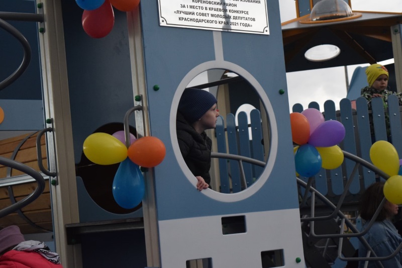 Сегодня для кореновских ребятишек в городском парке торжественно открылась долгожданная детская площадка «Космическая станция». Это — подарок детям от парламентариев, которые приобрели игровой комплекс за счет призовых средств, полученных благодаря победе в конкурсе «Лучший Совет молодых депутатов Краснодарского края» в 2021 году.