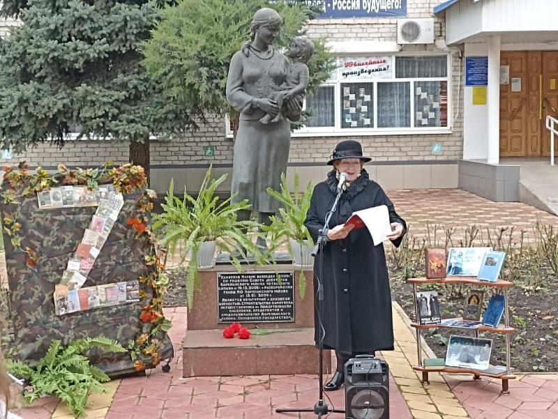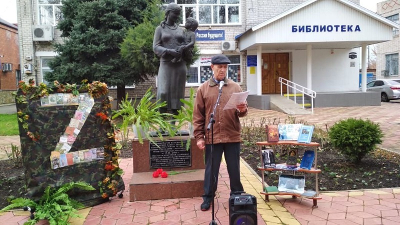 Сегодня с раннего утра в городе начали работу тематические площадки. В 9 часов утра у памятника Матери открылась площадка «Солдатским матерям посвящается…», где местные поэты и библиотекари, продолжая традиции военной поэзии времён Великой Отечественной войны читали стихи, посвящённые матерям военнослужащих и мобилизованных граждан, принимающих участие в СВО. Работала радиогазета.