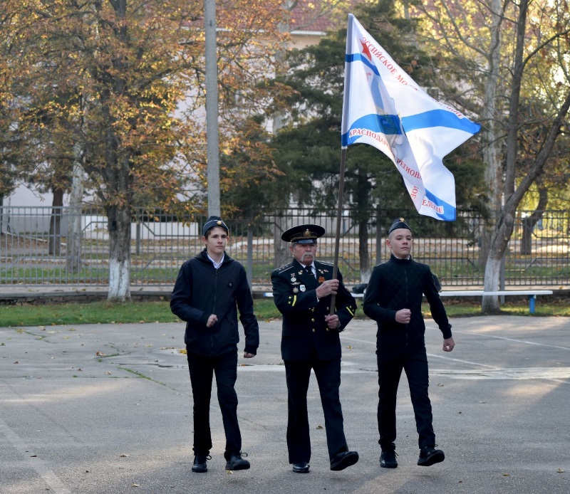 В кореновской школе №17 подняли флаги ветераны ВМФ и школьники
