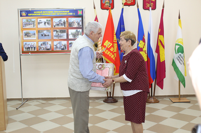 Также поздравили членов общества председатель Кореновской районной организации Краснодарской краевой общественной организации ветеранов (пенсионеров,инвалидов) войны, труда, Вооруженных сил и правоохранительных органов полковник в отставке Владимир Палиев, начальник управления Пенсионного фонда России в Кореновском районе Краснодарского края Элла Колесникова и руководитель управления социальной защиты населения в Кореновском районе Валентина Мироненко.