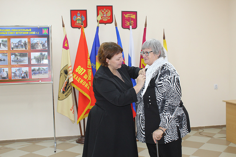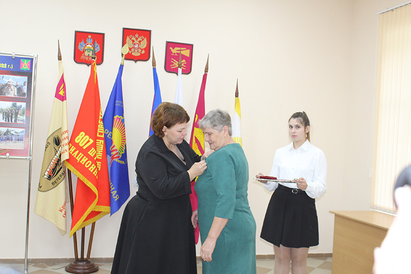 Церемонию награждения открыла начальник отдела по социальным вопросам администрации МО Кореновский район Светлана Гурина, зачитавшая поздравительные слова от главы Кореновского района Сергея Голобородько и наградила медалями МО Кореновский район «77 лет Великой Победы» Веру Комендант, Ракиба Садикова, Людмилу Майстренко, Ирину Пивоварову, Марию Стуканог, Оксану Семиз, Любовь Ермак.