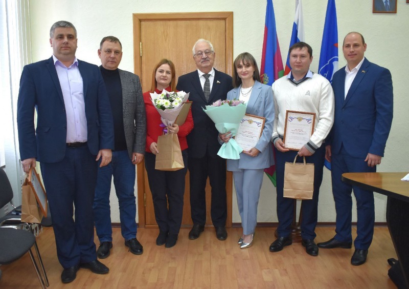 После личного приема депутат Государственной Думы Алексей Езубов вручил благодарности за активную общественно-политическую деятельность, эффективную работу с избирателями и личный вклад в работу Кореновского местного отделения партии «Единая Россиия» руководителю местной общественной приемной Кореновского местного отделения партии «Единая Россия» Карине Антоненко, депутату Совета МО Кореновский район Игорю Бабенко, депутату Совета Кореновского городского поселения Александру Блинову, депутату Совета Братковского сельского поселения Сергею Котлярову и депутату Совета Пролетарского сельского поселения Ольге Макаровой.