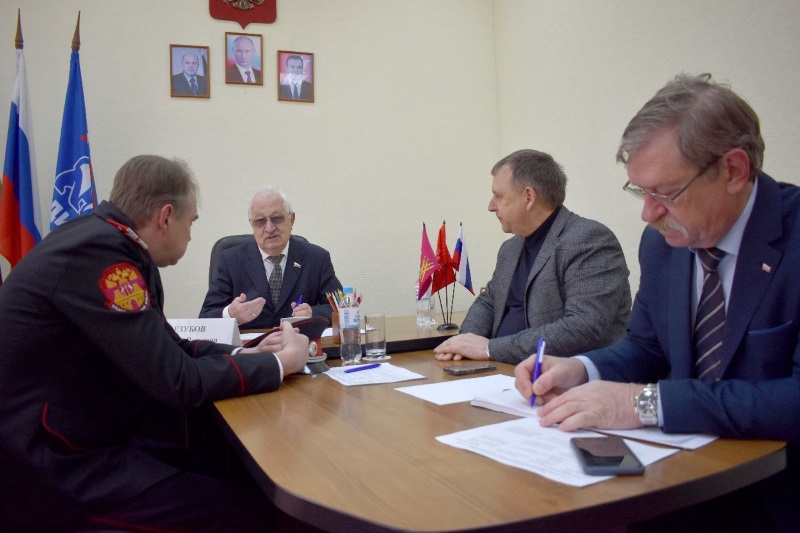 Первым было обращение пенсионера Дядьковского сельского поселения о помощи в получении земельного пая; вторым - вопрос переоформления дачного дома в жилой; третьим было обращение о предоставлении дополнительных выплат к пенсии Заслуженным работникам сельского хозяйства, четвертым моментом обсудили установку дополнительной приемно-передающей вышки сотовой связи на территории местного гарнизона и обустройство подъездной дороги от трассы Кореновск-Тимашевск до воинской части, а также обсудили развитие казачьего движения в регионе.
