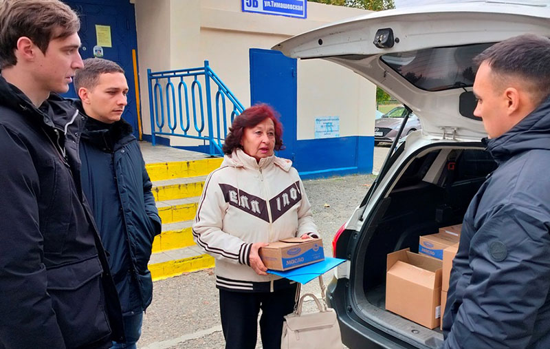 В преддверии даты и.о. председателя СМД Валерий Сбитнев, Олег Лазарев и Максим Задорожный по просьбе председателя общества Татьяна Машкинцевой привезли большую партию подарочных наборов и офисную бумагу в здание кореновского ВОИ.