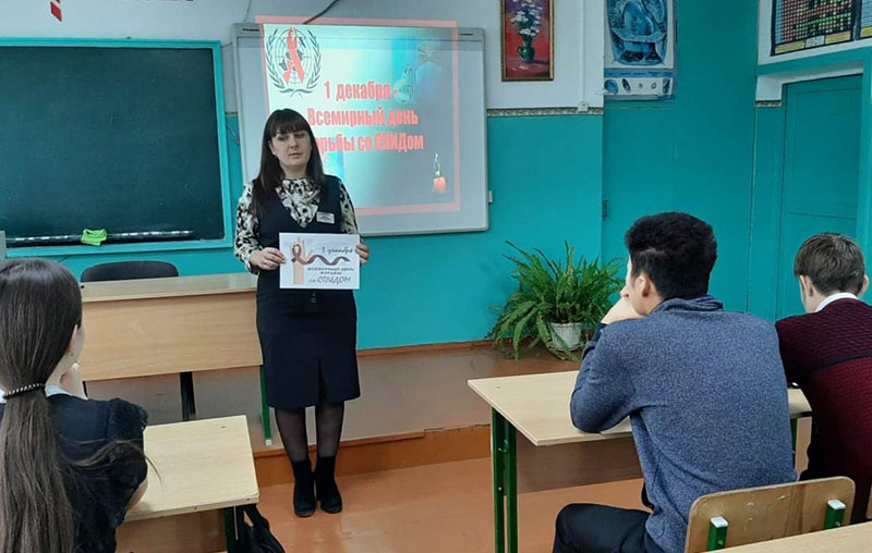 В ходе урока-презентации Ольга Свиридова рассказала ученикам 11 класса об истории появления этой знаковой даты, учрежденной ООН в память о жертвах ВИЧ-инфекции, а также о значении акции «Красная ленточка», направленной на общественную поддержку людей, столкнувшихся с опасной болезнью.