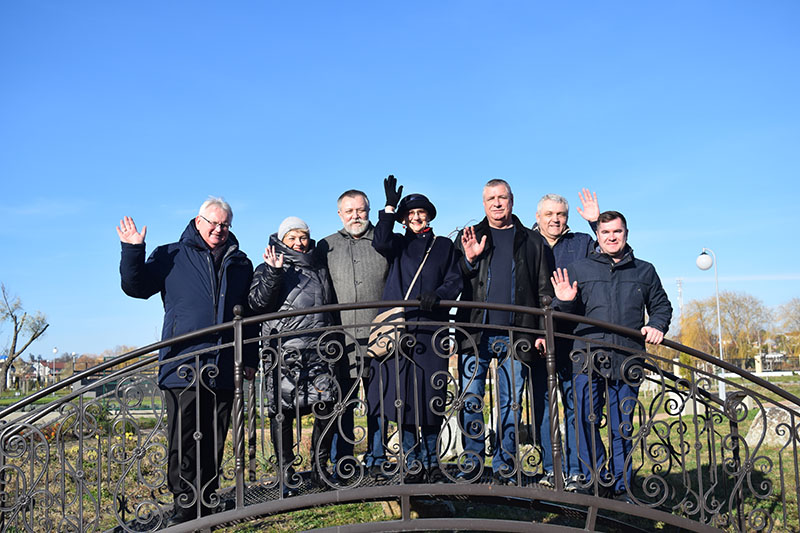 Следующим пунктом культурной программы стало посещение любимого места отдыха кореновцев всех возрастов - городского парка культуры и отдыха. Экскурсию по нему провела главный администратор парка Татьяна Третина. Она рассказала гостям об истории парка, этапах его благоустройства. Сложно поверить, что всего несколько лет назад он выглядел совершенно по-другому, нежели сейчас. Не было шикарной набережной, ротонд, да и озеленение было гораздо скромнее. Сейчас посетителей радуют роскошные розы, множество цветников, декоративные элементы, сад камней и даже пруд, где живут «золотые рыбки» - карпы Кои. Еще здесь появилось множество малых архитектурных форм, спортивные площадки, скалодром, площадка для воркаута, фрисби и особенная гордость сотрудников парка — павлинарий с парой павлинов, любимцев кореновской детворы. Их так и зовут — Павлуша и Павушка.