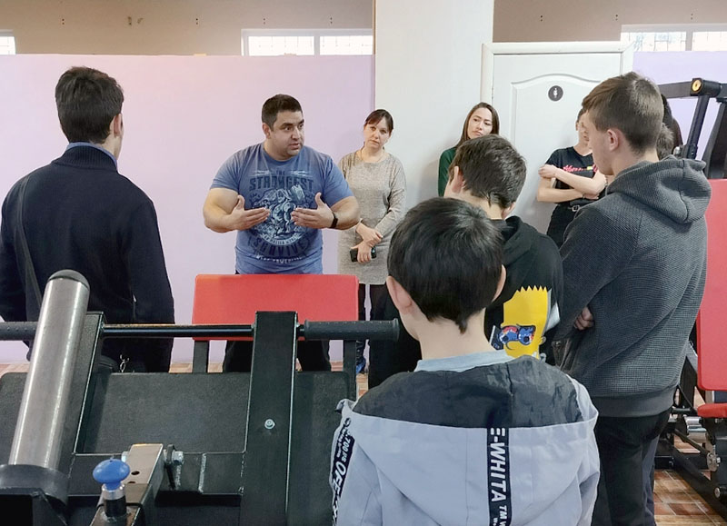 Руководитель клуба Михаил Гаманенко побеседовал с ребятами о пользе регулярных занятий спортом, рассказал о секциях, действующих на базе клуба, таких как пауэрлифтинг, различные виды единоборств и традиционная русская игра кила. Затем показал ребятам спортивные залы и продемонстрировал базовые упражнения на тренажёрах.