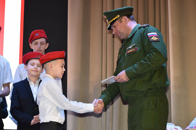 Владимир Фокеев вручил ребятам личные книжки юнармейцев, которые начинаются с напутственного слова министра обороны РФ генерала армии С.Шойгу.