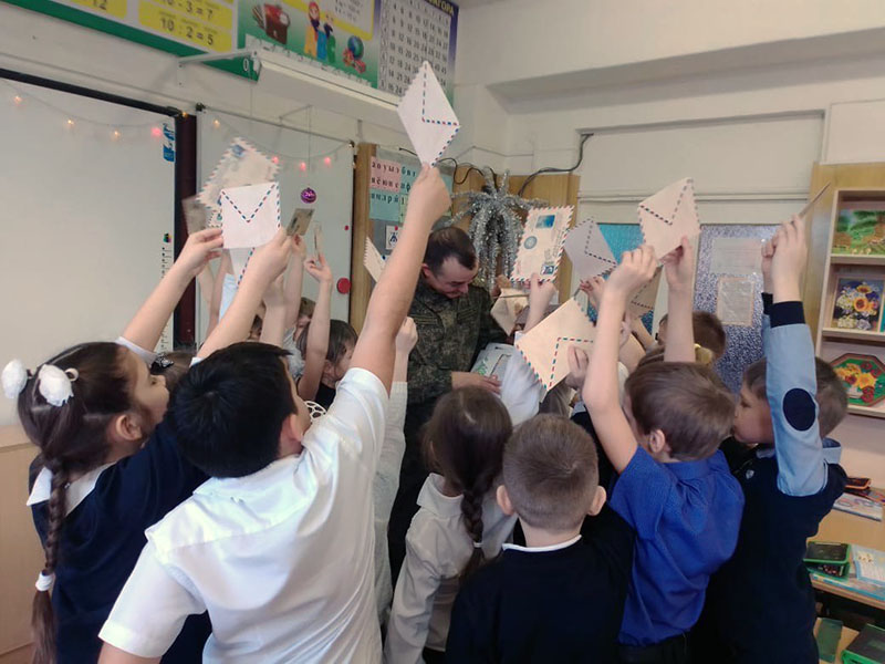 Ученики школы№ 5 им. трижды Героя Советского Союза А.И. Покрышкина подготовили для солдат, выполняющих спецоперацию трогательные послания в виде новогодних поздравлений.