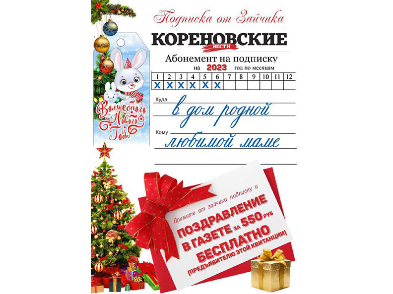 Подпишись и выиграй! Успейте до 26 декабря выписать «Кореновские вести» на 1 полугодие 2023 года и принять участие в нашей акции «Подпишись и выиграй!».
