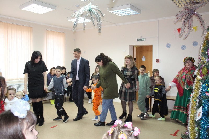 Нас встретила в просторном зале у нарядной елки заведующая клубом Вера Зубова. Зазвучали фанфары и дружно встали в круг с друзьями ребятня и взрослые, зазвенела песня «Раз морозною зимой». На лицах появились улыбки, вместе с ребятишками исполняли танцевальные движения «Если весело у елки — делай так!» мамы, папы, бабушки и даже гости из ООО «ПФК «Весна». Все отправились на паровозике Букашке в чудный и волшебный мир новогодней сказки!