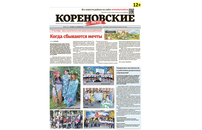 Читайте в свежем номере "Кореновских вестей" (№ 39 от 25 сентября)