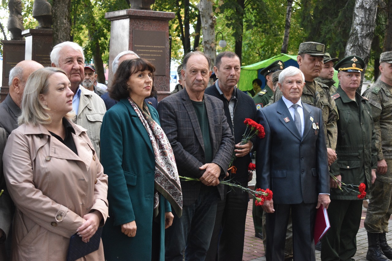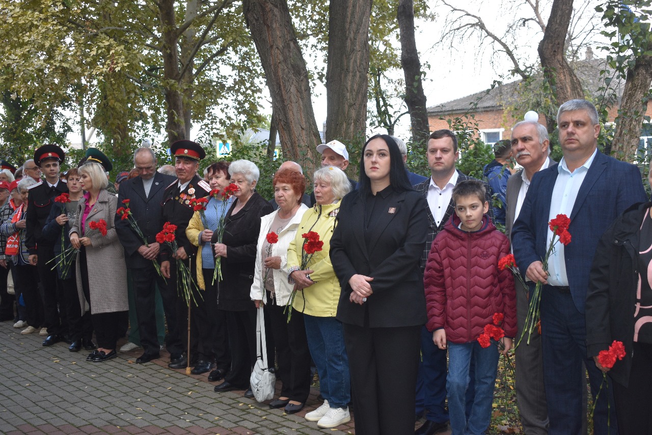 В Кореновском сквере Воинской славы на открытии доски почёта Героям Социалистического Труда Кореновского района собрались почётные гости: семьи Героев СоцТруда, председатель Совета МО Кореновский муниципальный район Василий Васильевич Слепухин, заместитель главы Кореновского городского поселения Яна Евгеньевна Слепокурова, председатель районного Совета ветеранов Владимир Иванович Палиев, главы поселений, депутаты, члены Общественного Совета, аграрии, военнослужащие, казаки, общественники, активисты Движения Первых, юрнармейцы, школьники, жители и гости нашего города.