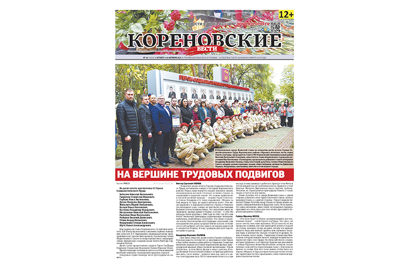 Читайте в свежем номере "Кореновских вестей" (№42 от 16 октября))