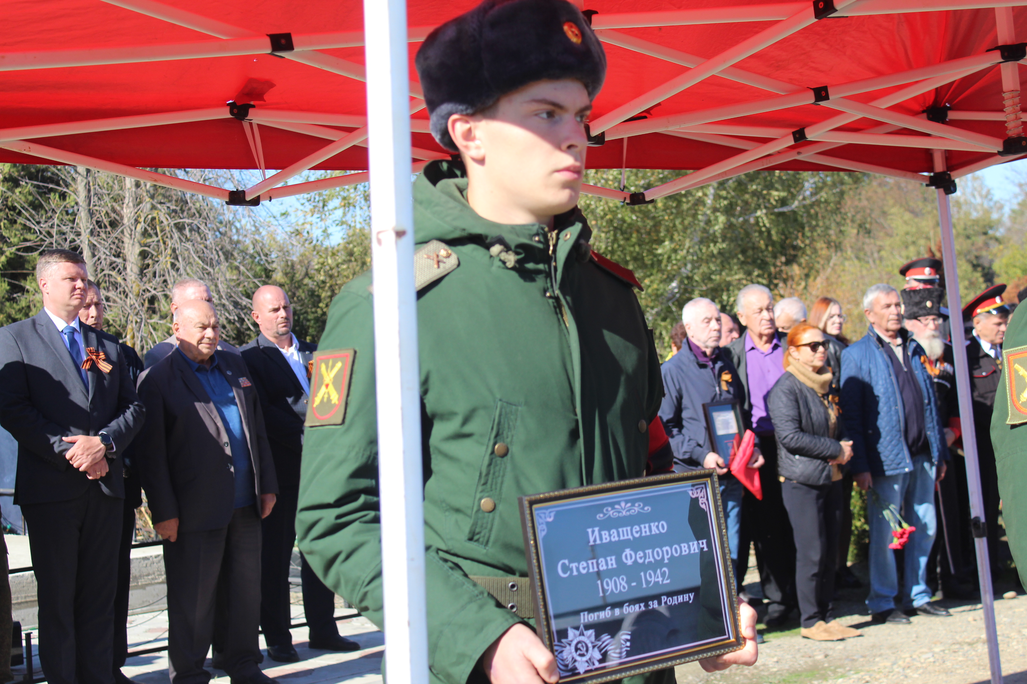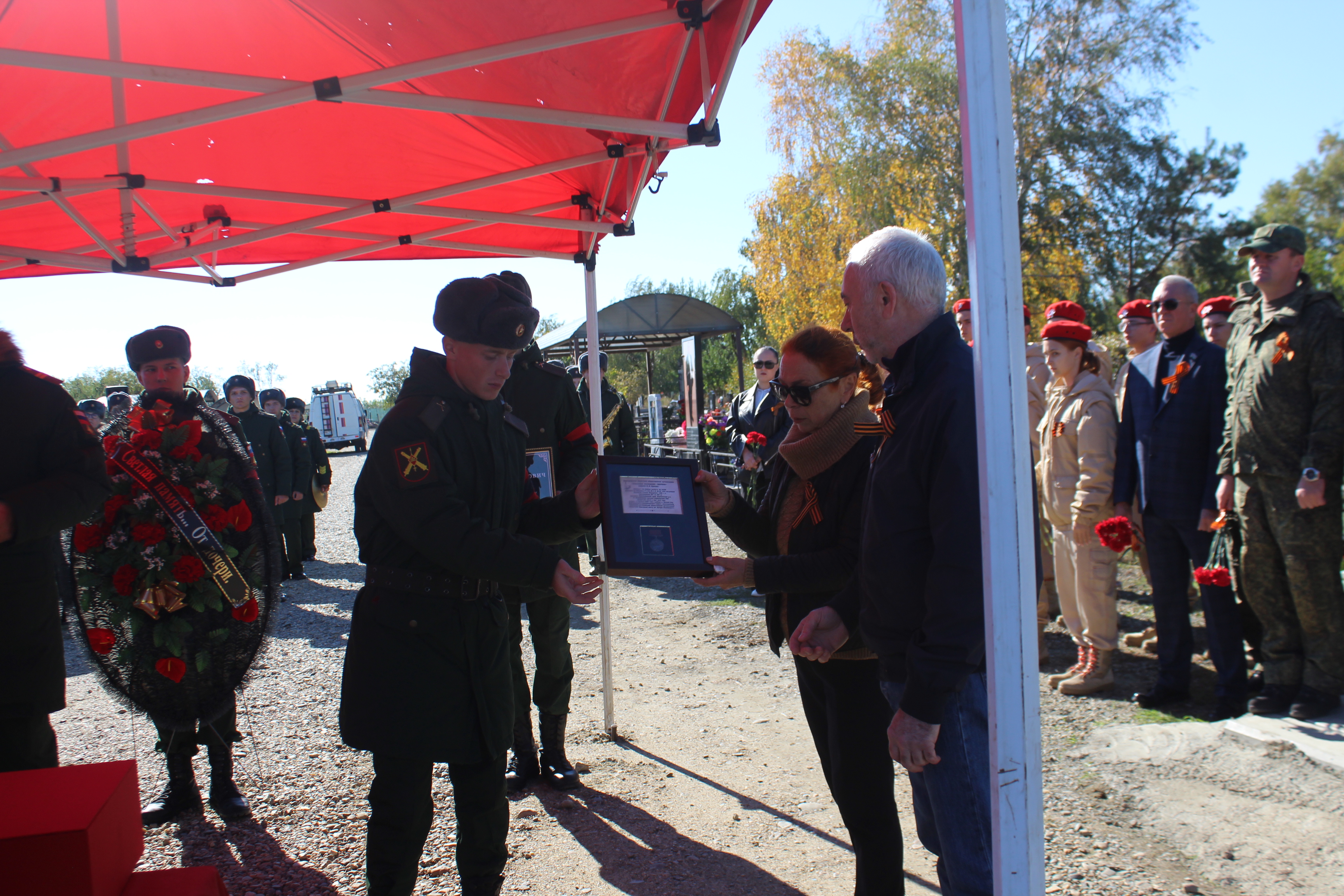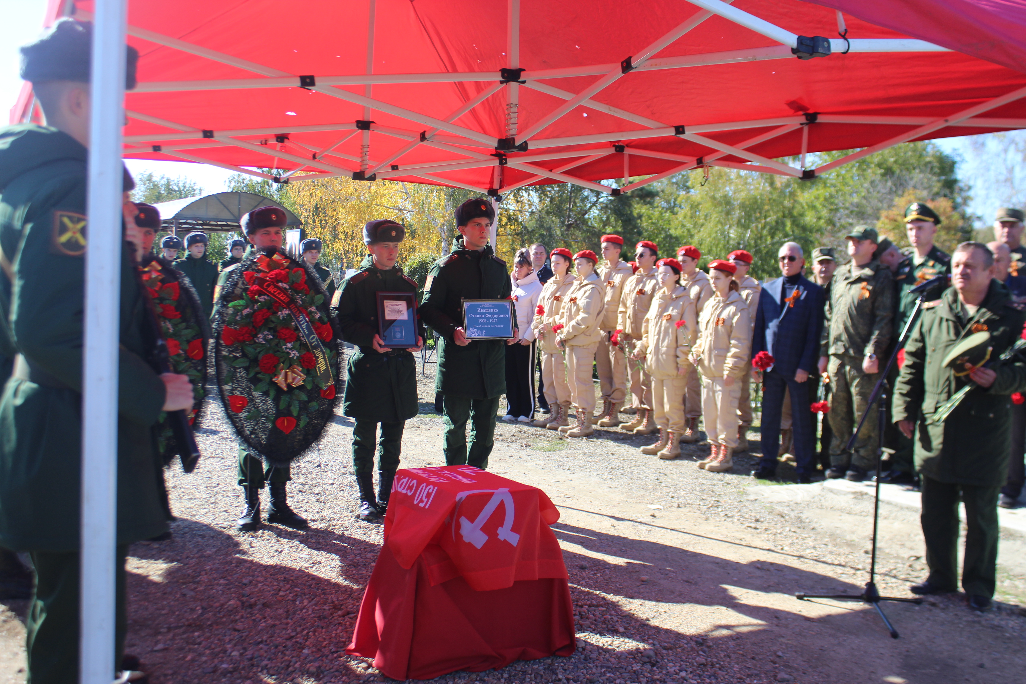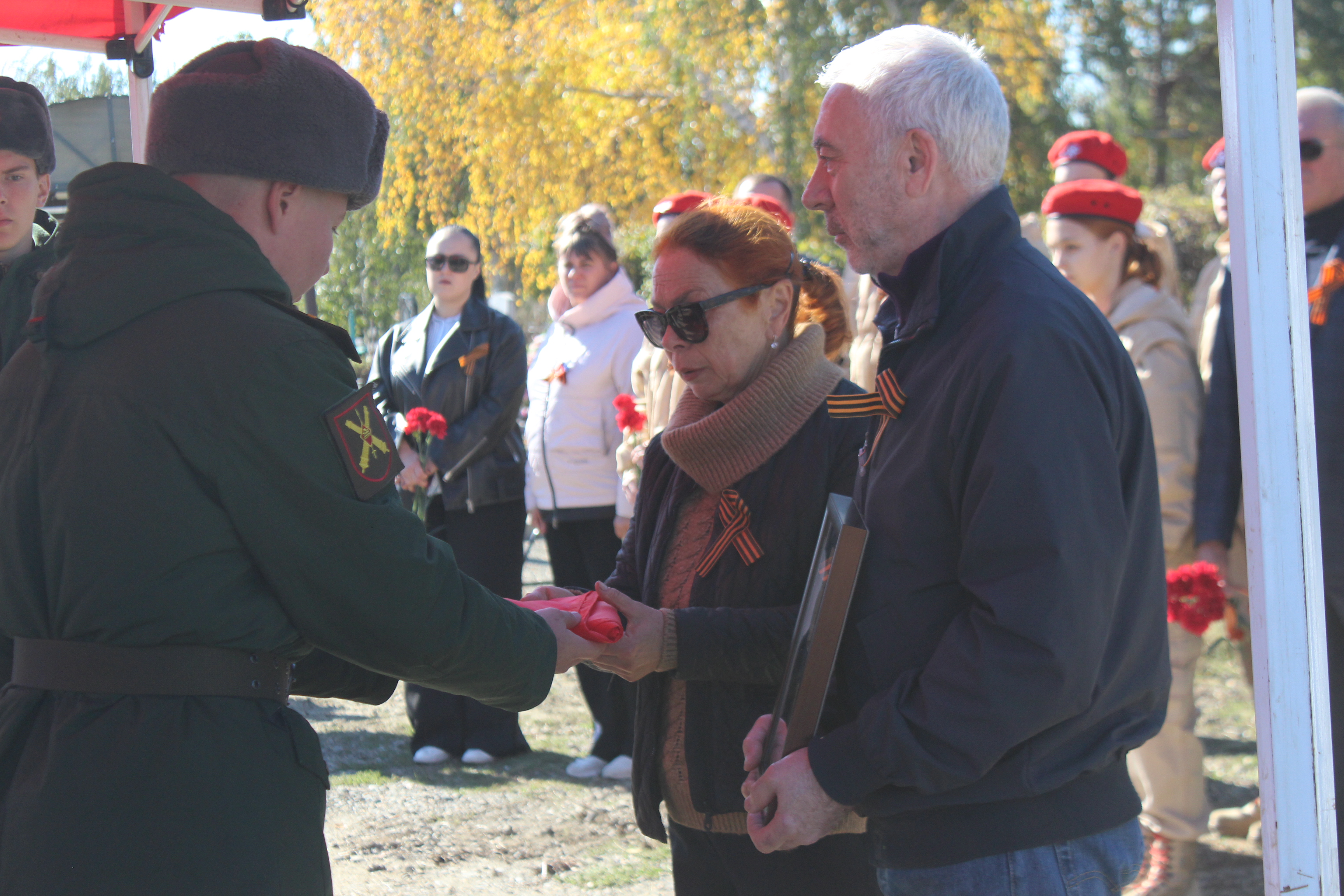 14 октября в зале Воинской славы Великого Новгорода поисковики передали останки бойца и медаль «За боевые заслуги» представителям администрации Кореновского городского поселения.