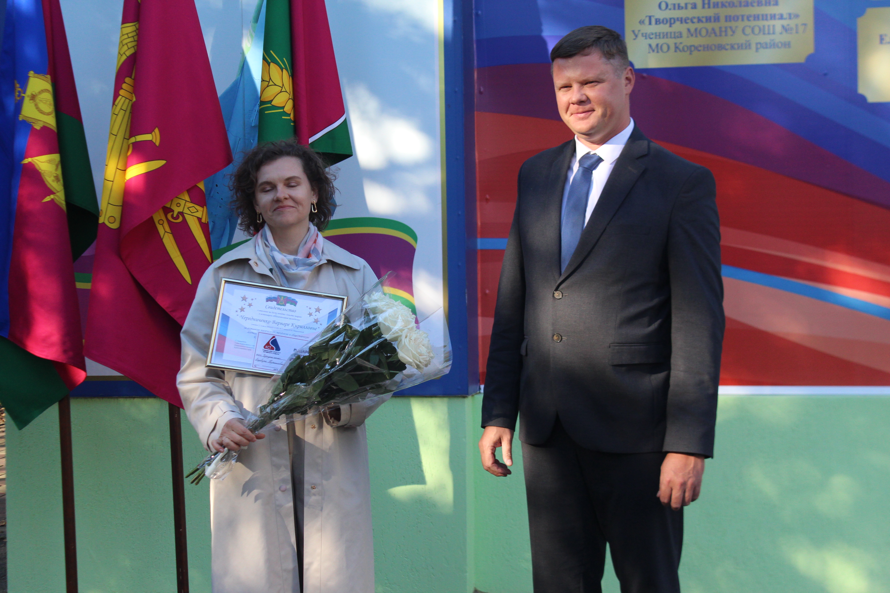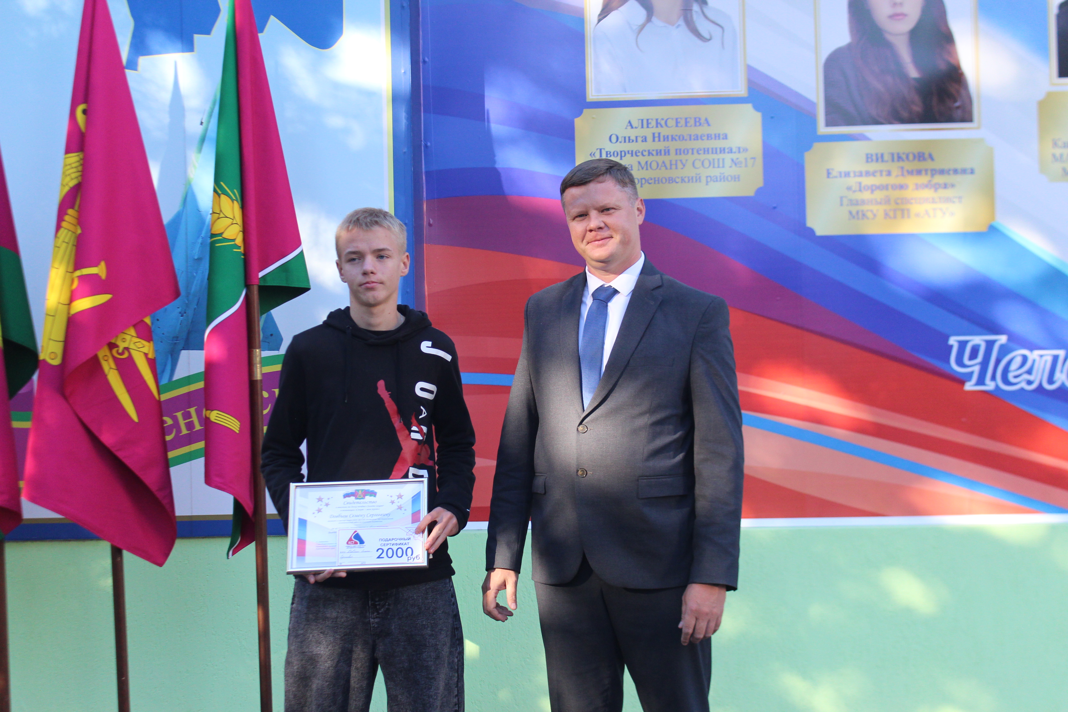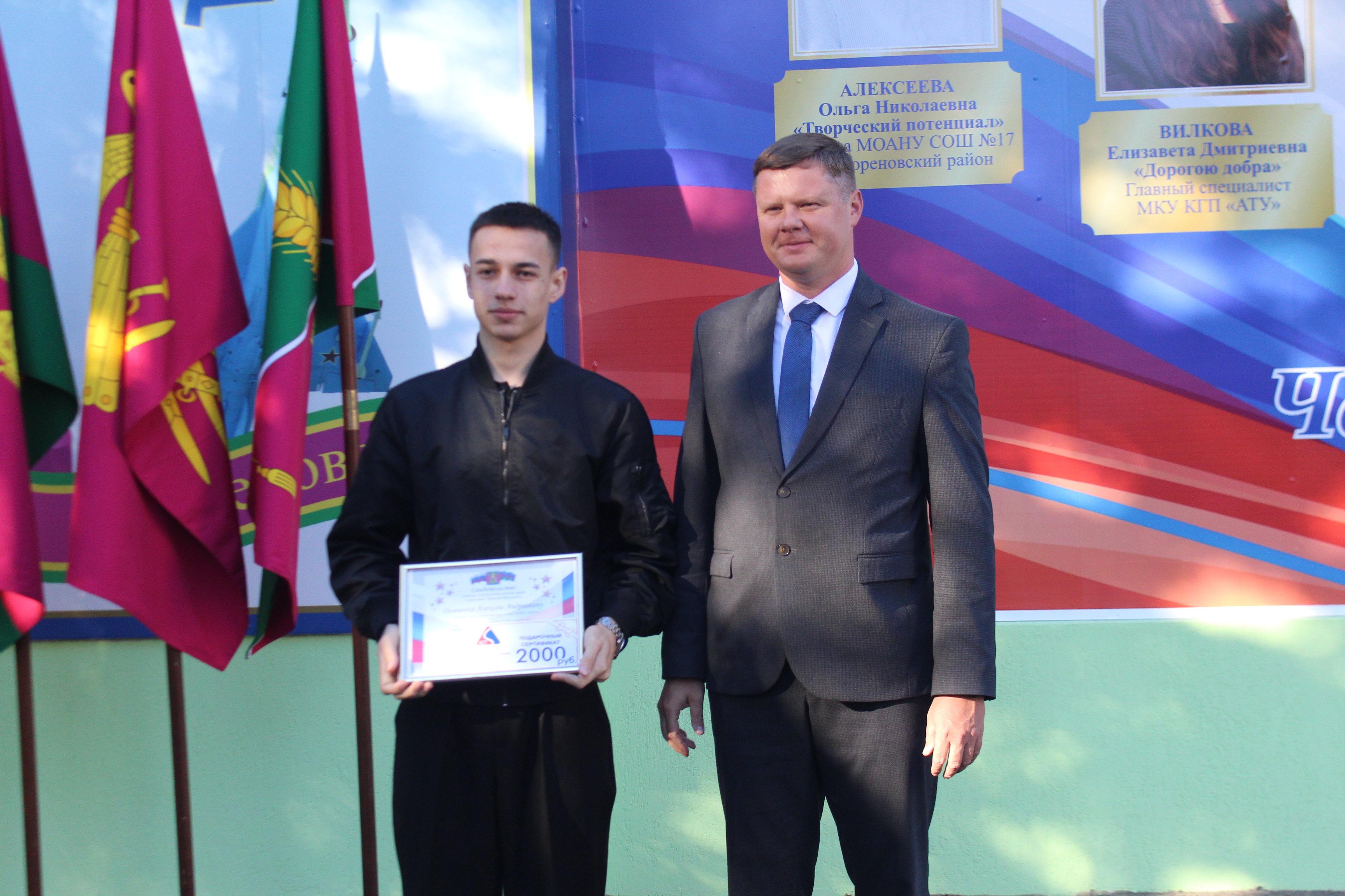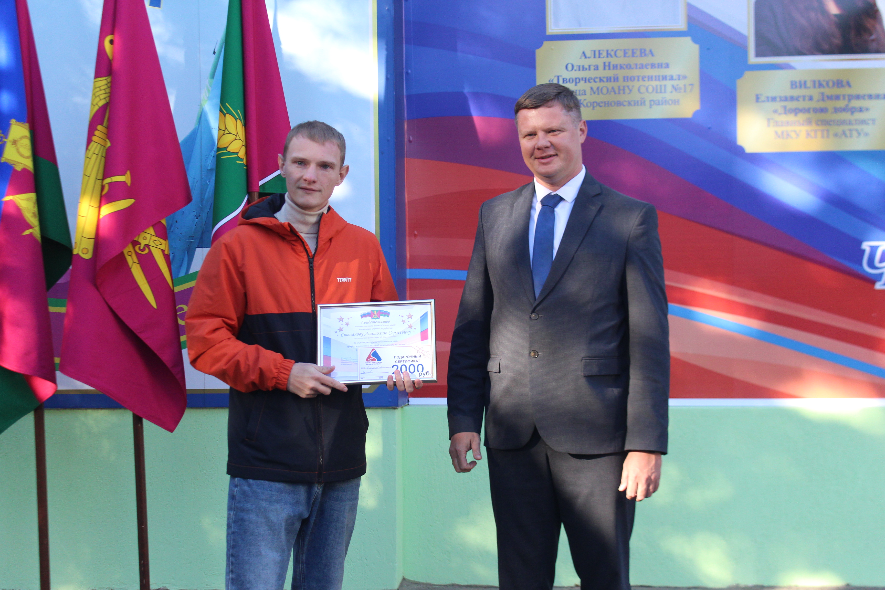 После музыкального пролога - танца «Новая жизнь», исполненного участницами ТСК «Индиго», в торжественной обстановке, в присутствии председателя Совета Кореновского городского поселения Евгения Деляниди, председателя районного Совета ветеранов Владимира Палиева, председателя «Союза ветеранов Чернобыльской катастрофы» Виктора Бежевца мэр города Максим Шутылев вручил ребятам, добившимся успехов в учебе и работе, свидетельства о занесении на Доску Почета и памятные подарки.