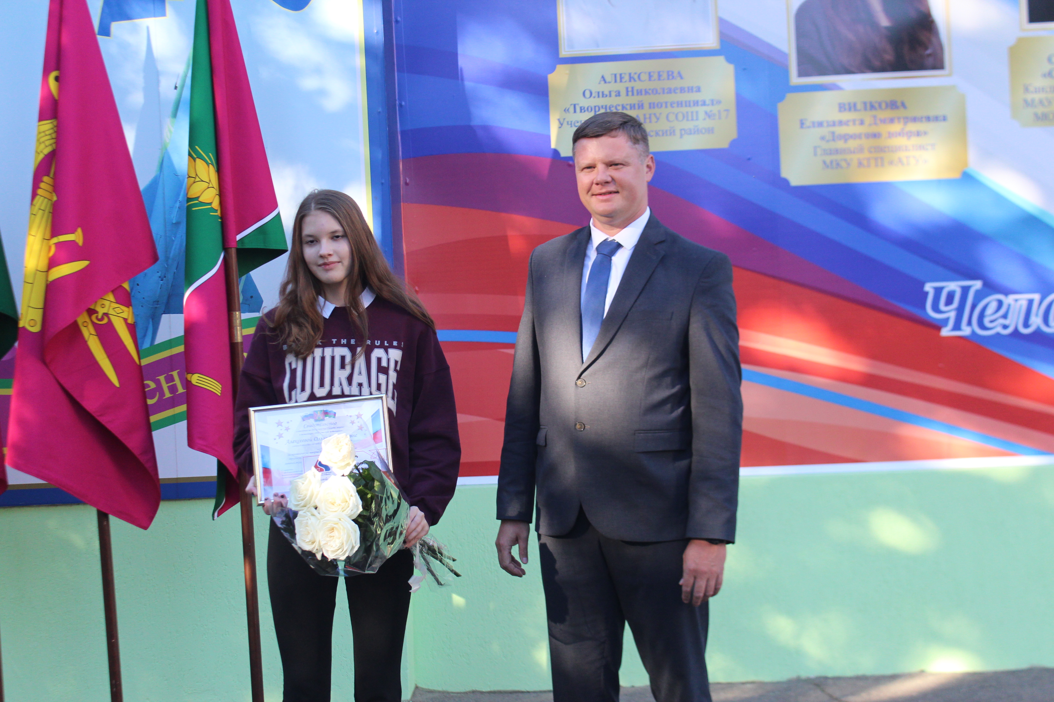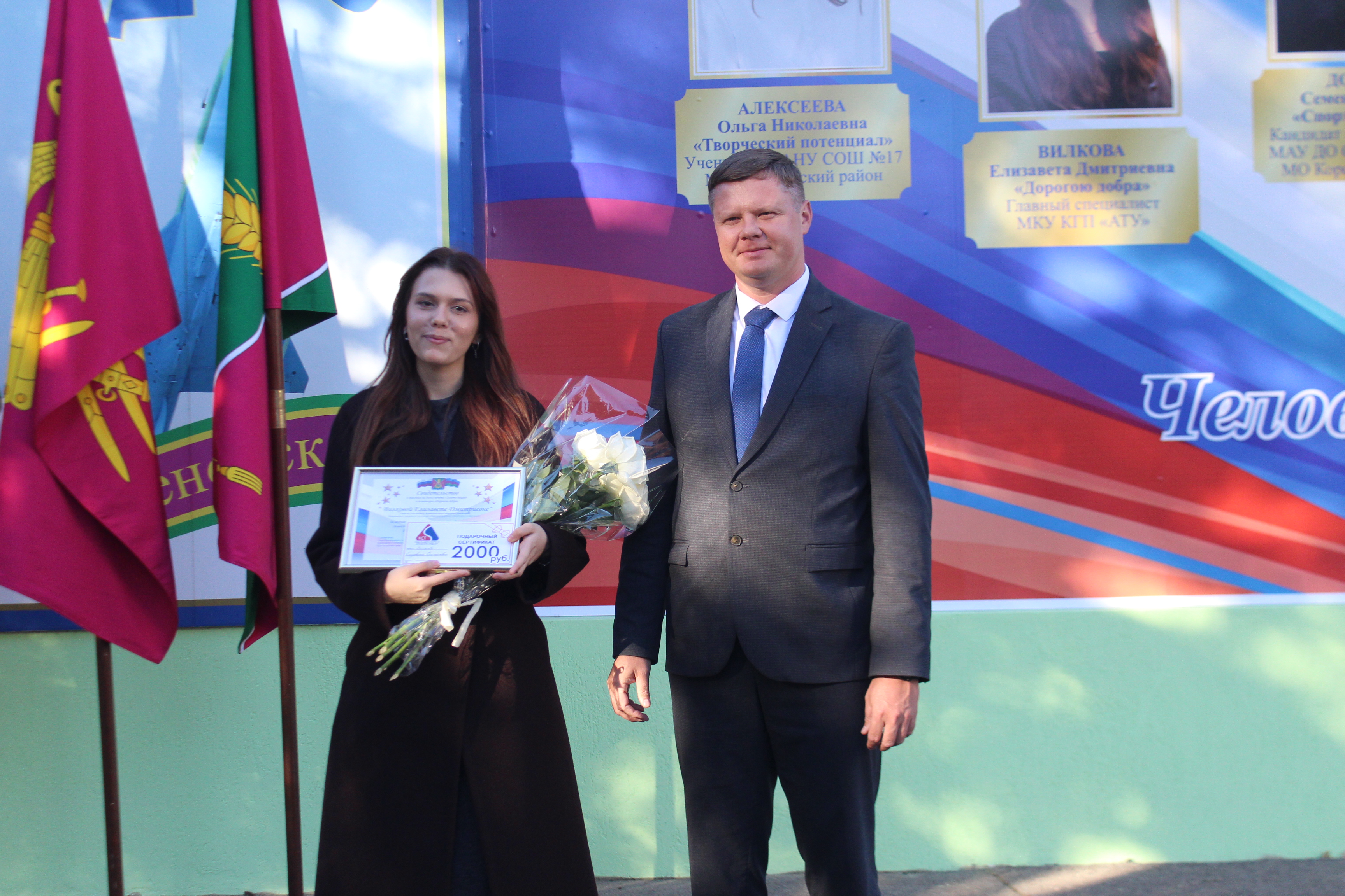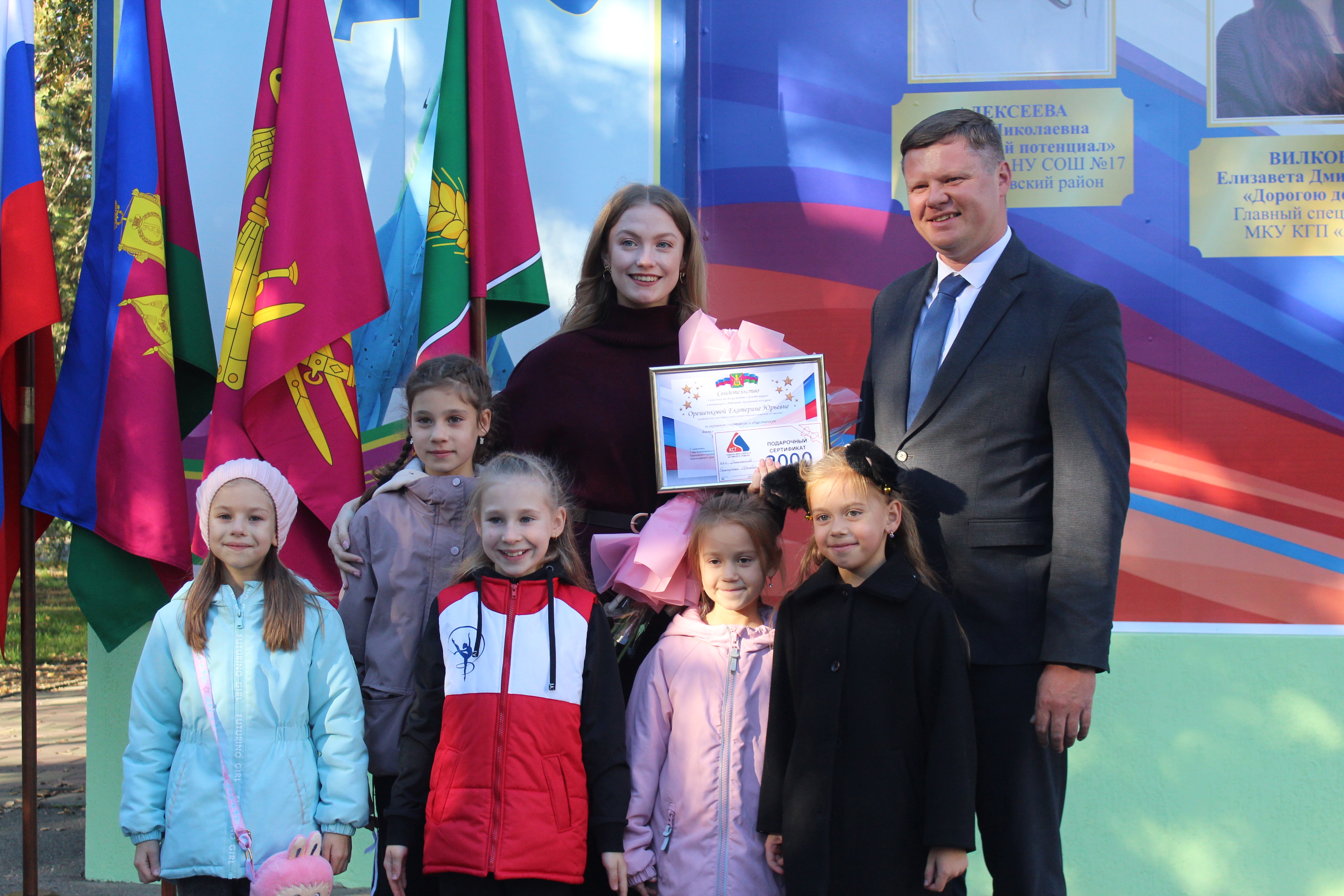 «Талантливая молодёжь» - Варвара Кирилловна Чередниченко. Выпускница школы №17 имени К.В. Навальневой, окончила школу с золотой медалью, на ЕГЭ по литературе набрала максимальные 100 баллов. Победитель и призёр муниципального этапа Всероссийских олимпиад.
