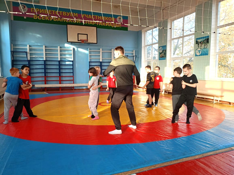 А затем Олег Кирпиченко провел для ребят открытый урок-тренировку и поделился опытом владения самбо.