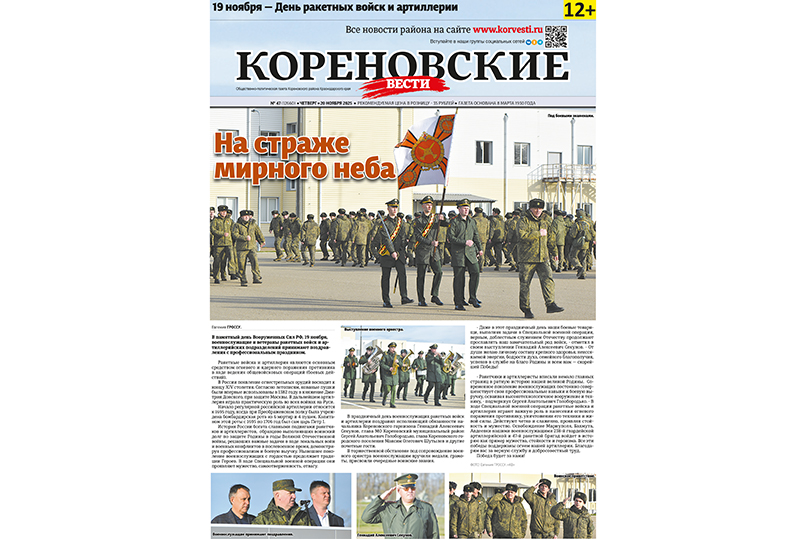 Читайте в свежем номере "Кореновских вестей" (№47 от 20.11.25)