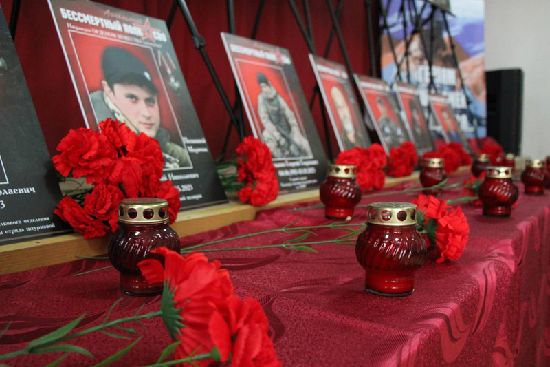 Ведущие мероприятия с проникновенными словами рассказали о жизненном пути и героическом подвиге выпускников техникума, отдавших свои жизни в ходе СВО.