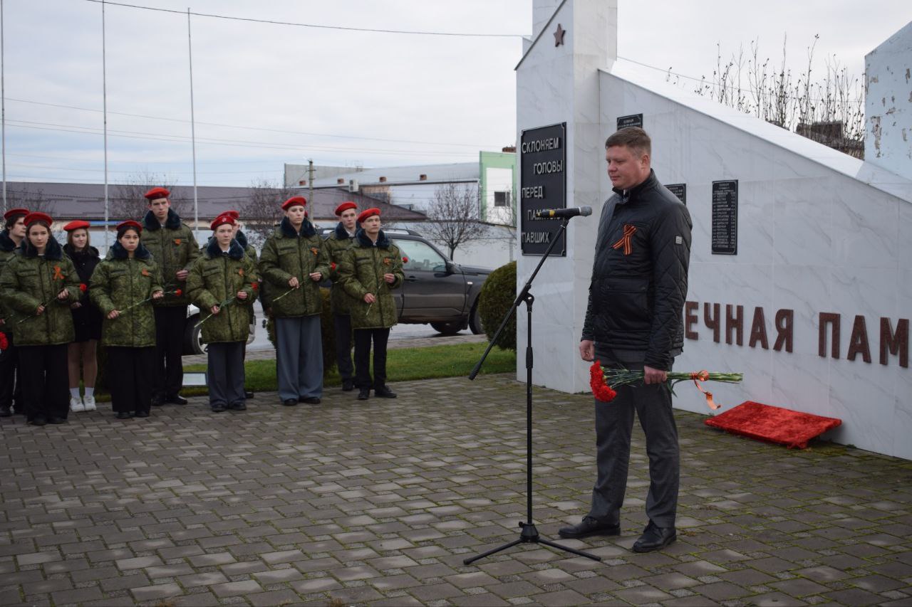 Этот день особенно значим в Год защитника Отечества и 80-летия Великой Победы. Со словами признательности за бессмертные подвиги героев выступили председатель Совета МО Кореновский муниципальный район Василий Слепухин, заместитель главы района Александр Манько, глава городской администрации Максим Шутылев, председатель районного Совета ветеранов полковник в отставке Владимир Палиев и другие почетные гости.