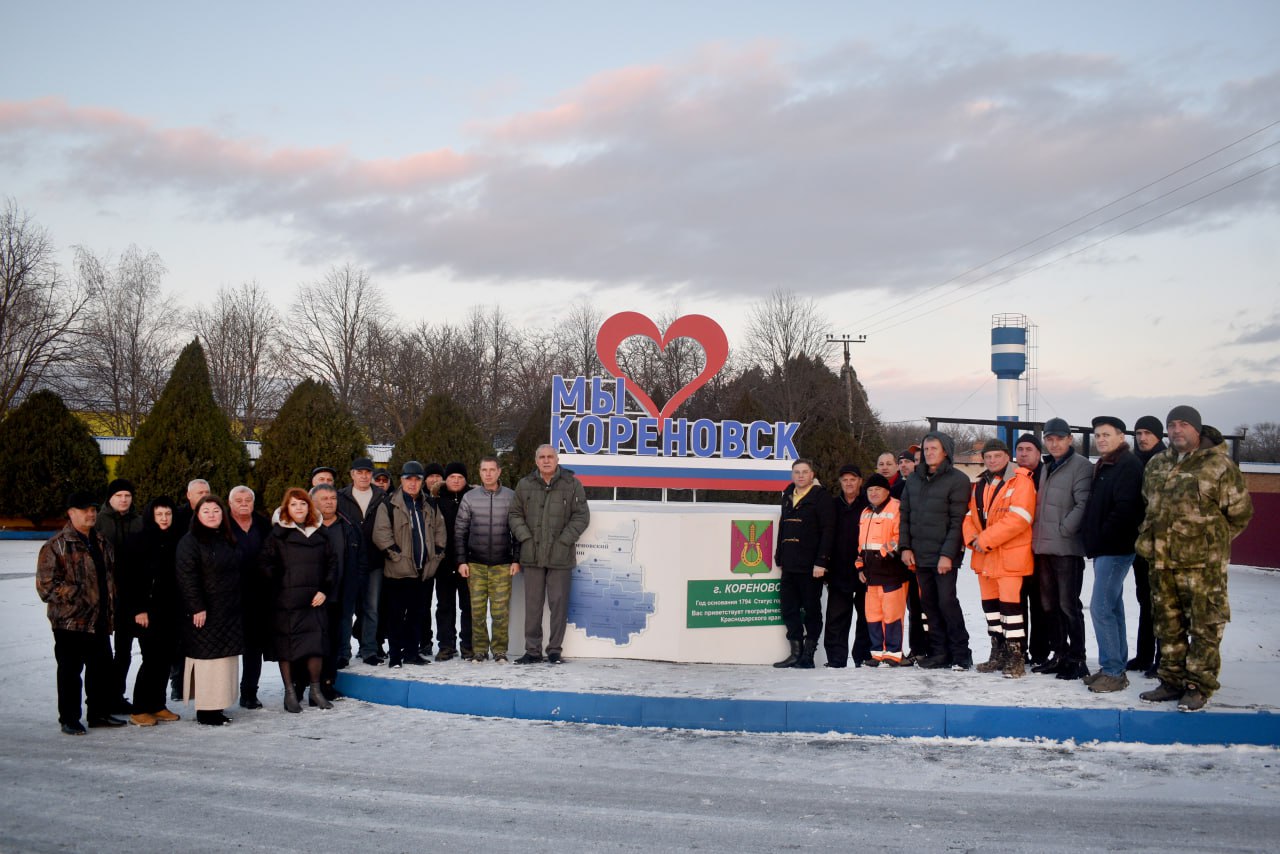 На арт-объекте расположено не только признание в любви, но и флаг Российской Федерации, карты Краснодарского края и Кореновского района, гербы района, городского и сельских поселений, дата основания ст.Кореновской и присвоения ей статуса города. А рядом с фигурой - благоустроенная клумба с высаженными на ней хвойными растениями, которые даже зимой радуют взгляд неувядающей зеленью.