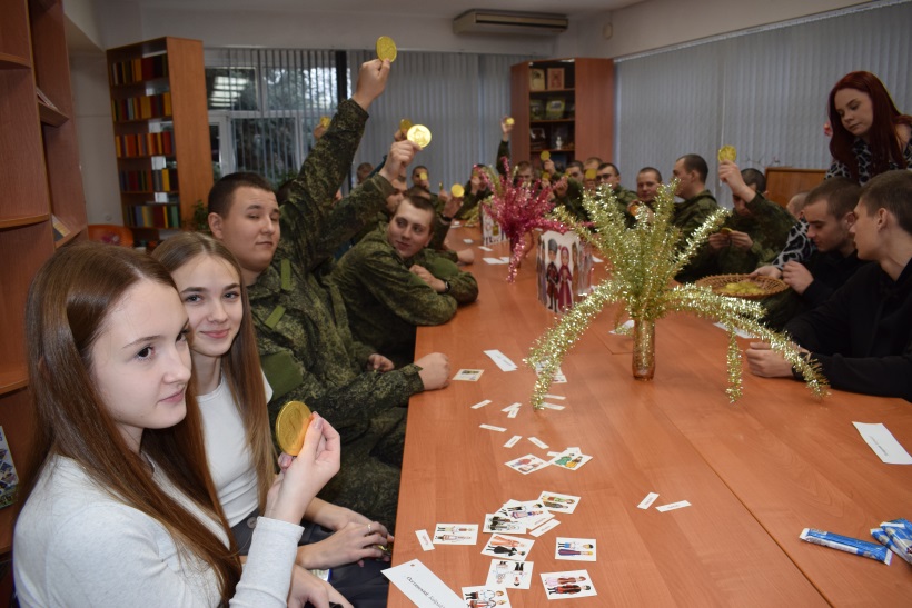 Юнкоры, студенты и военнослужащие посмотрели медиа-презентацию, тематические видеоролики, участвовали в интересных конкурсах и викторинах, которые подготовила и провела бессменная ведущая Литературной гостиной Светлана Агаркова и работники библиотеки.