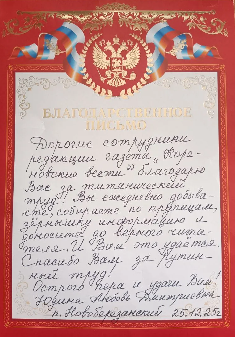 Щедра читательская любовь на добрые пожелания и искренние слова, которые дают нам стимул трудиться, стараться, не сетовать на невзгоды и, несмотря ни на что, двигаться вперед. Вот так, на протяжении 95 лет, любимая «районка» живет благодаря читателям, ради которых начинается наш каждый рабочий день.