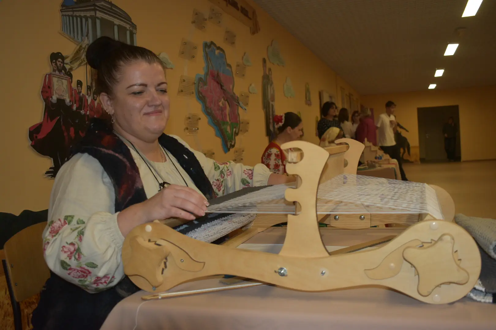 Здесь же, по соседству, развернулась выставка декоративно-прикладного искусства: "Ткачество", "Рогожная лоза", "Вышивка", выставка картин ДШИ г.Кореновска и ст.Платнировской "Пейзажи родного края", а также книжная выставка "Малочисленные народы России", писатели СВО, ремесленное искусство народов России.