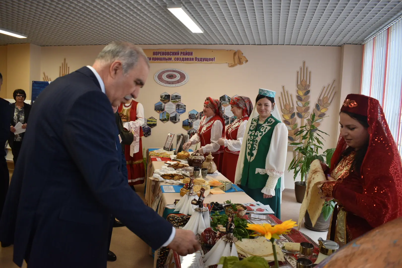 Каждое сельское поселение Кореновского района развернуло выставку-презентацию национальных блюд: ст.Раздольная - мордвины, х.Бураковский - осетины, п. Новоберезанский - цыгане, ст. Журавская - белорусы, с. Братковское - татары, ст. Сергиевская - корейцы, ст. Платнировская - армяне, ст. Дядьковская - русские, х. Пролетарский - удмурты.