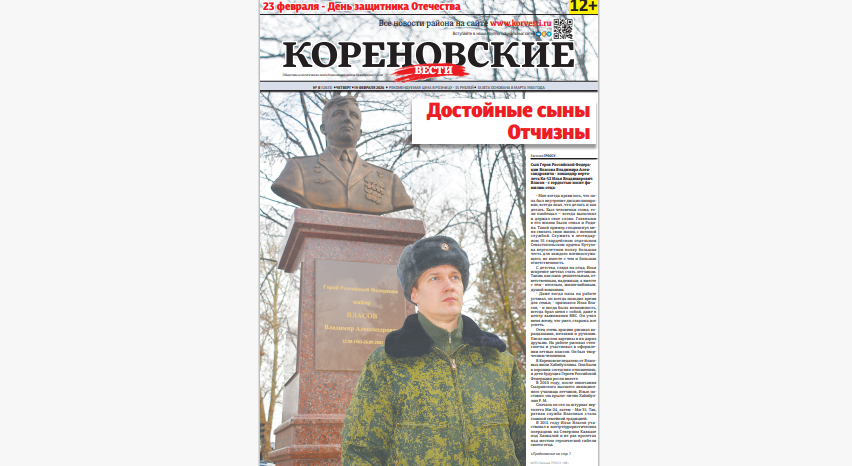 Читайте в свежем номере Кореновских вестей (№ 8 от 19 февраля)