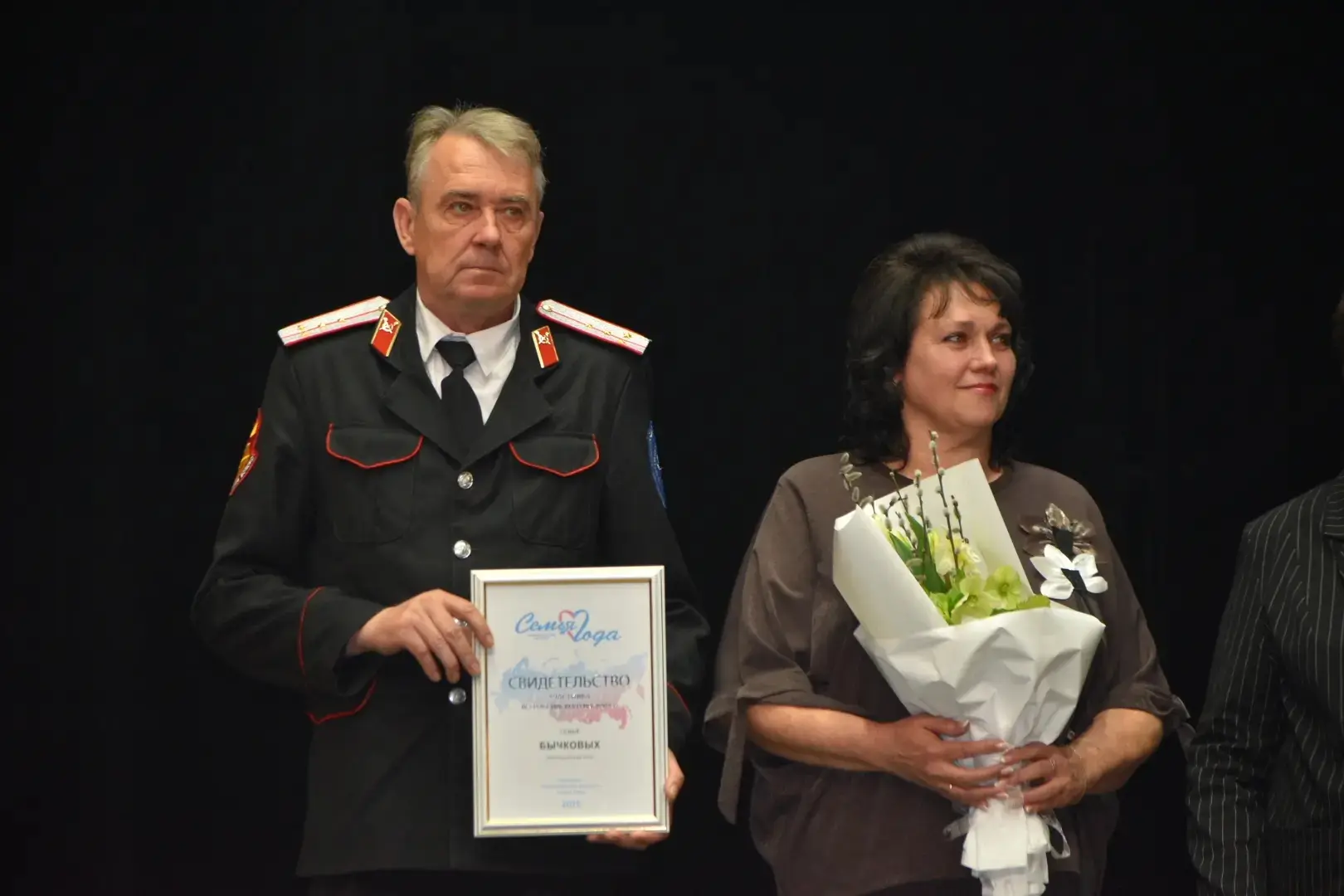 На фестивале чествовали победителей регионального этапа Всероссийского конкурса «Семья Года», среди которых семья атамана Кореновского муниципального района Олега и Елены Бычковых.