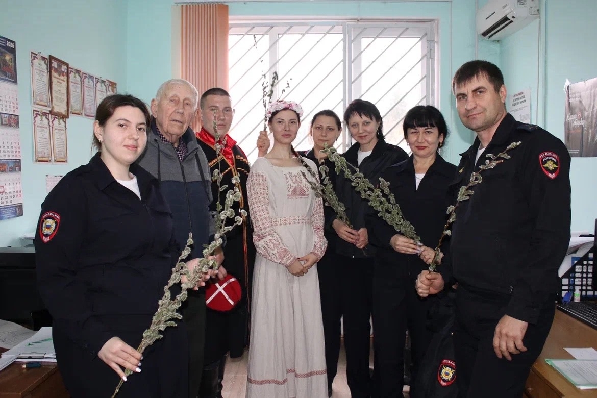 Кореновских полицейских волонтеры поздравили с Вербным воскресеньем