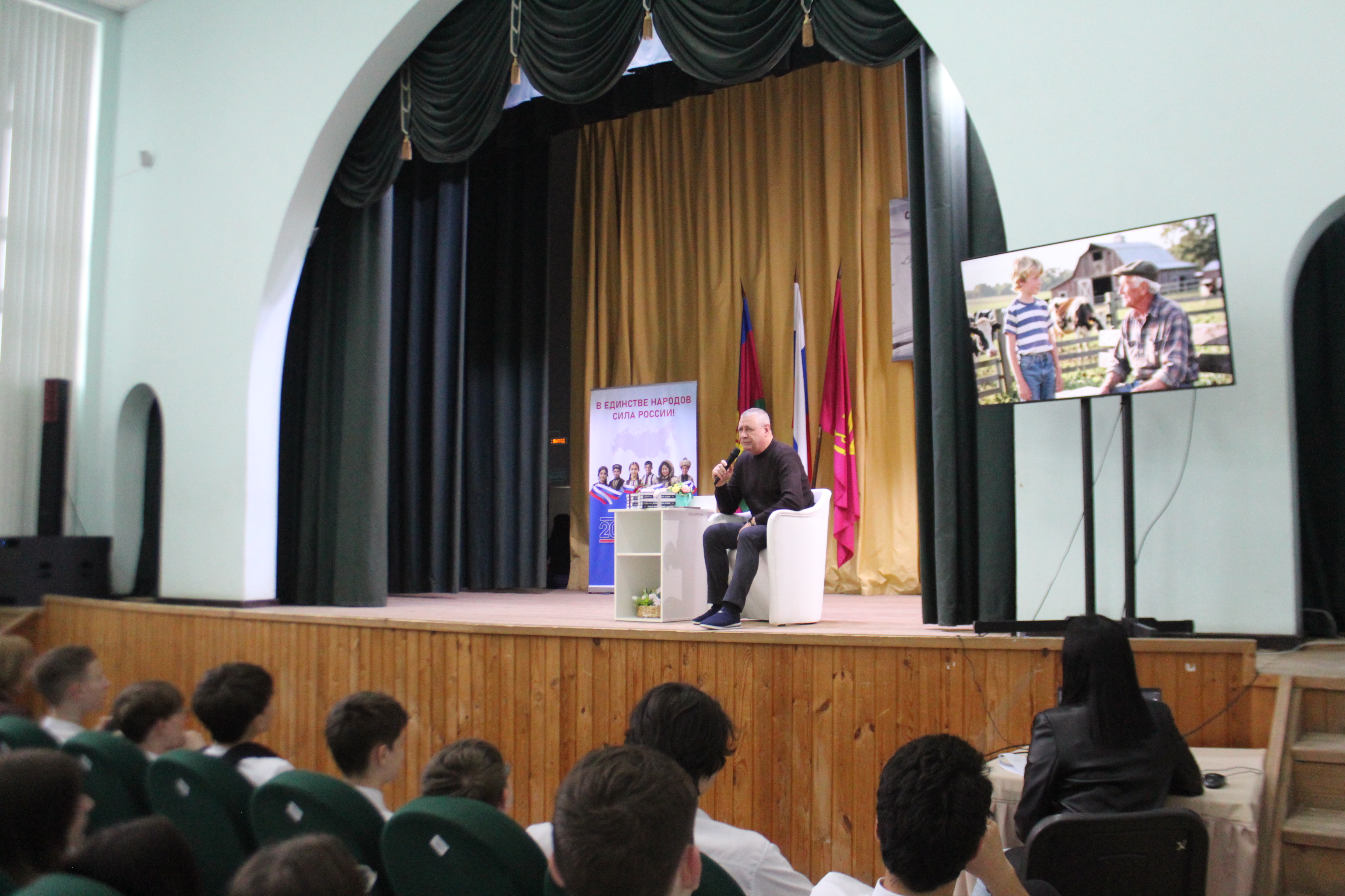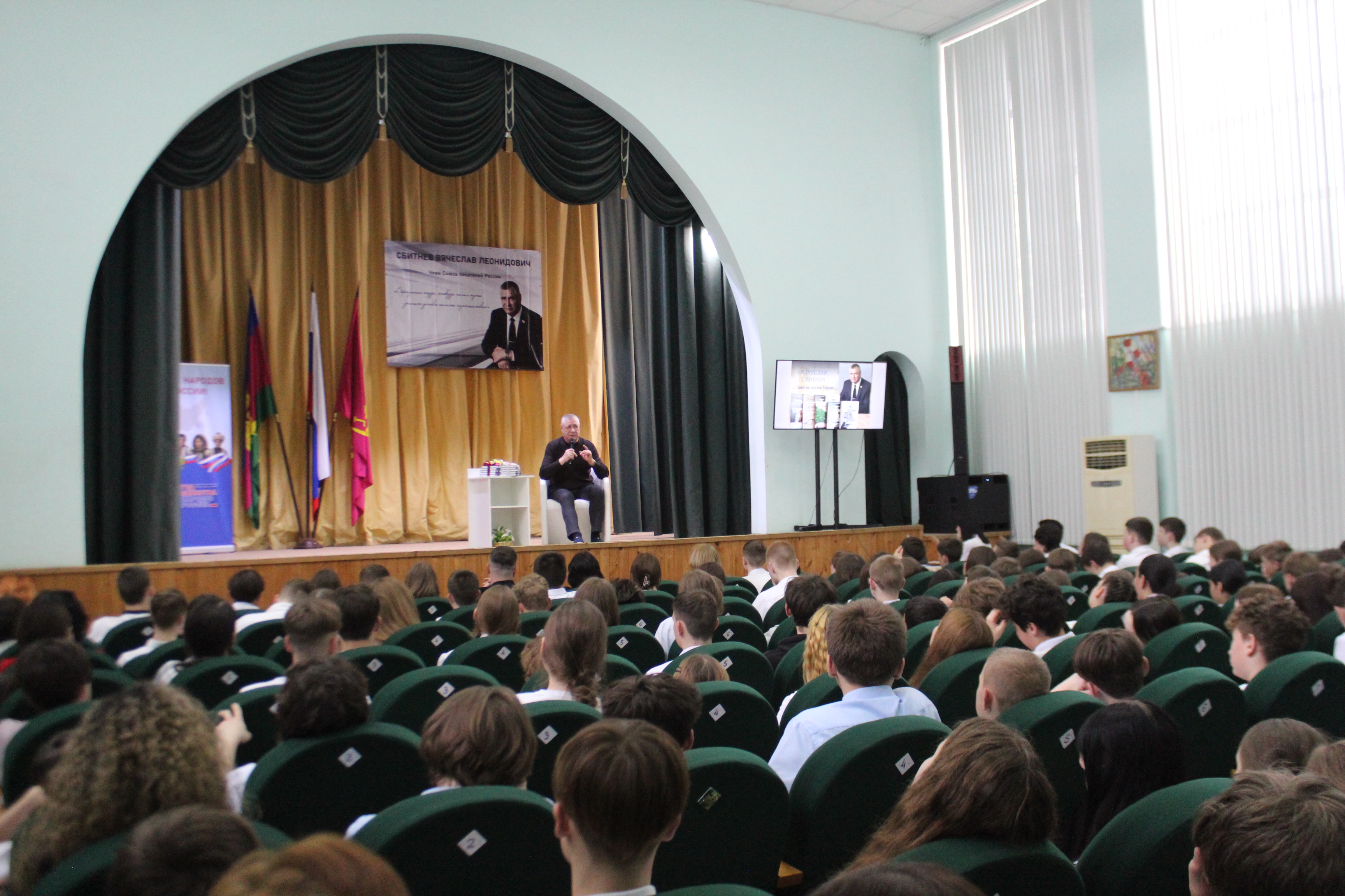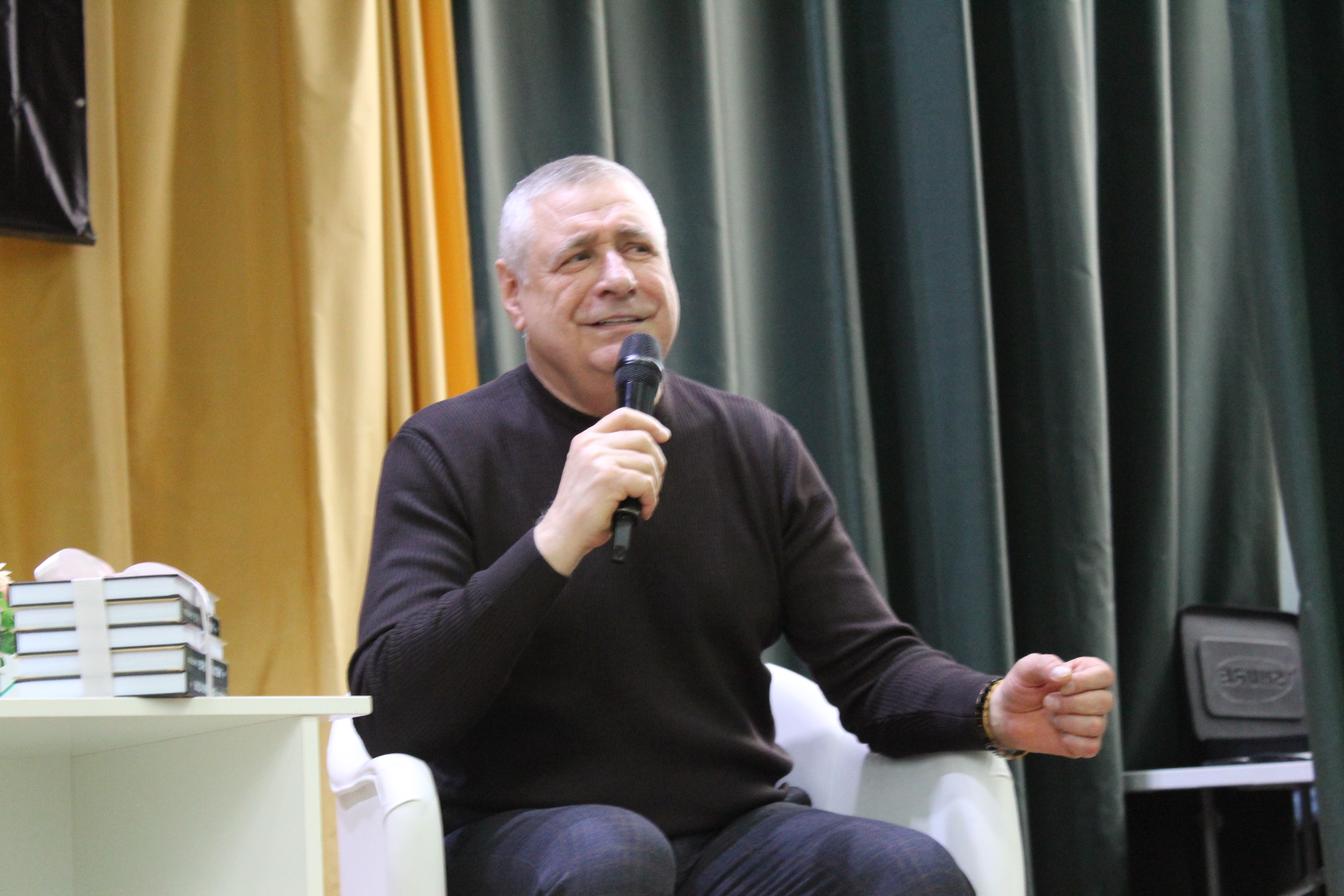 Встреча со школьниками получилась живой, веселой и откровенной. Вячеслав Сбитнев рассказал, как рождалась книга, какие материалы и истории легли в её основу, и с теплотой вспомнил свои школьные годы — учителей, друзей, первые литературные опыты.