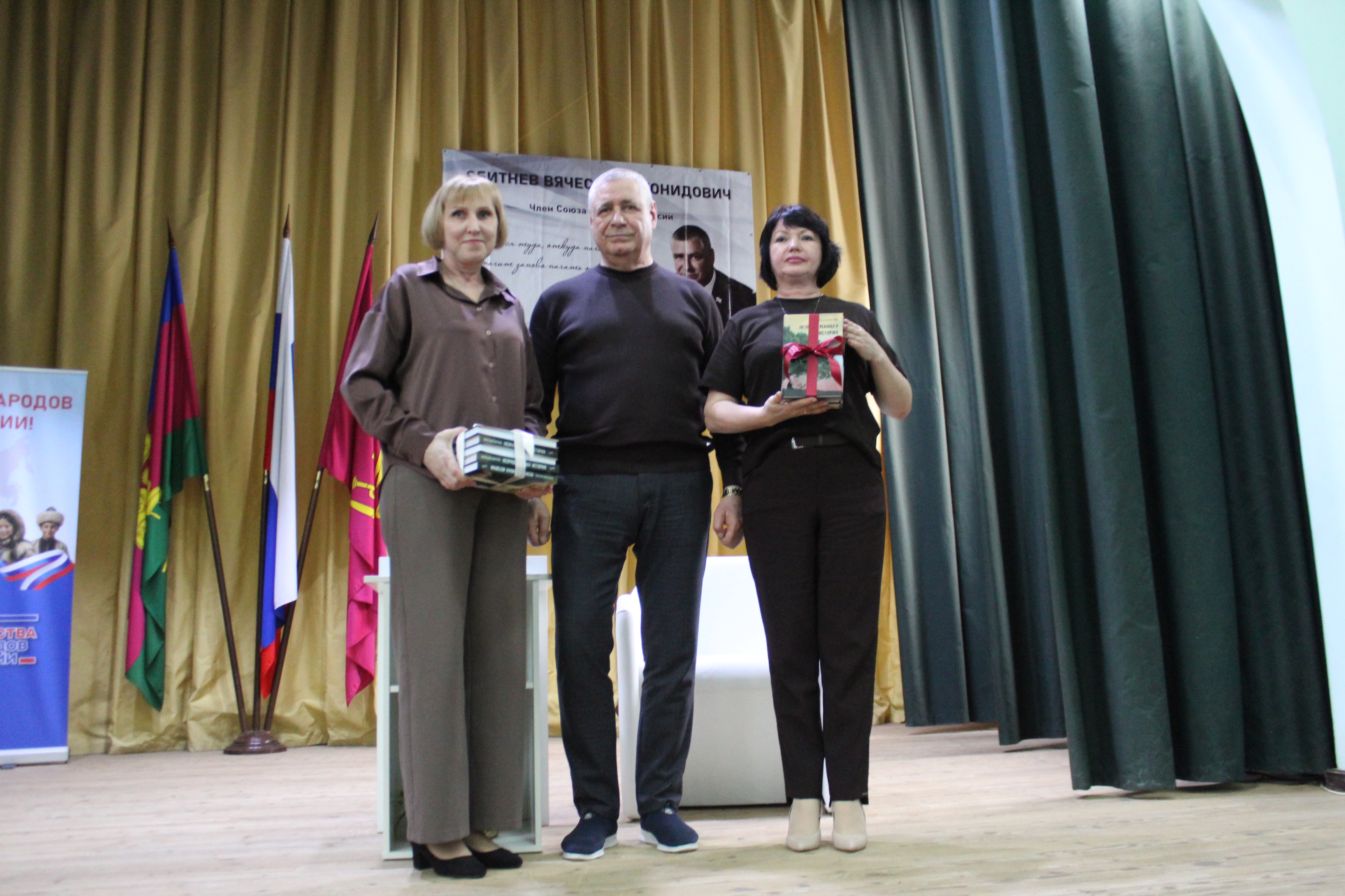 В зеленом зале районного Центра народной культуры и досуга прошла презентация книги «Непридуманная история» - пятого произведения известного кубанского писателя, члена Союза писателей России, депутата Законодательного Собрания Краснодарского края Вячеслава Сбитнева. Главными гостями встречи стали старшеклассники городских школ.