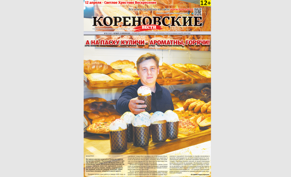 Читайте в свежем номере "Кореновских вестей" (№ 15 от 9 апреля)