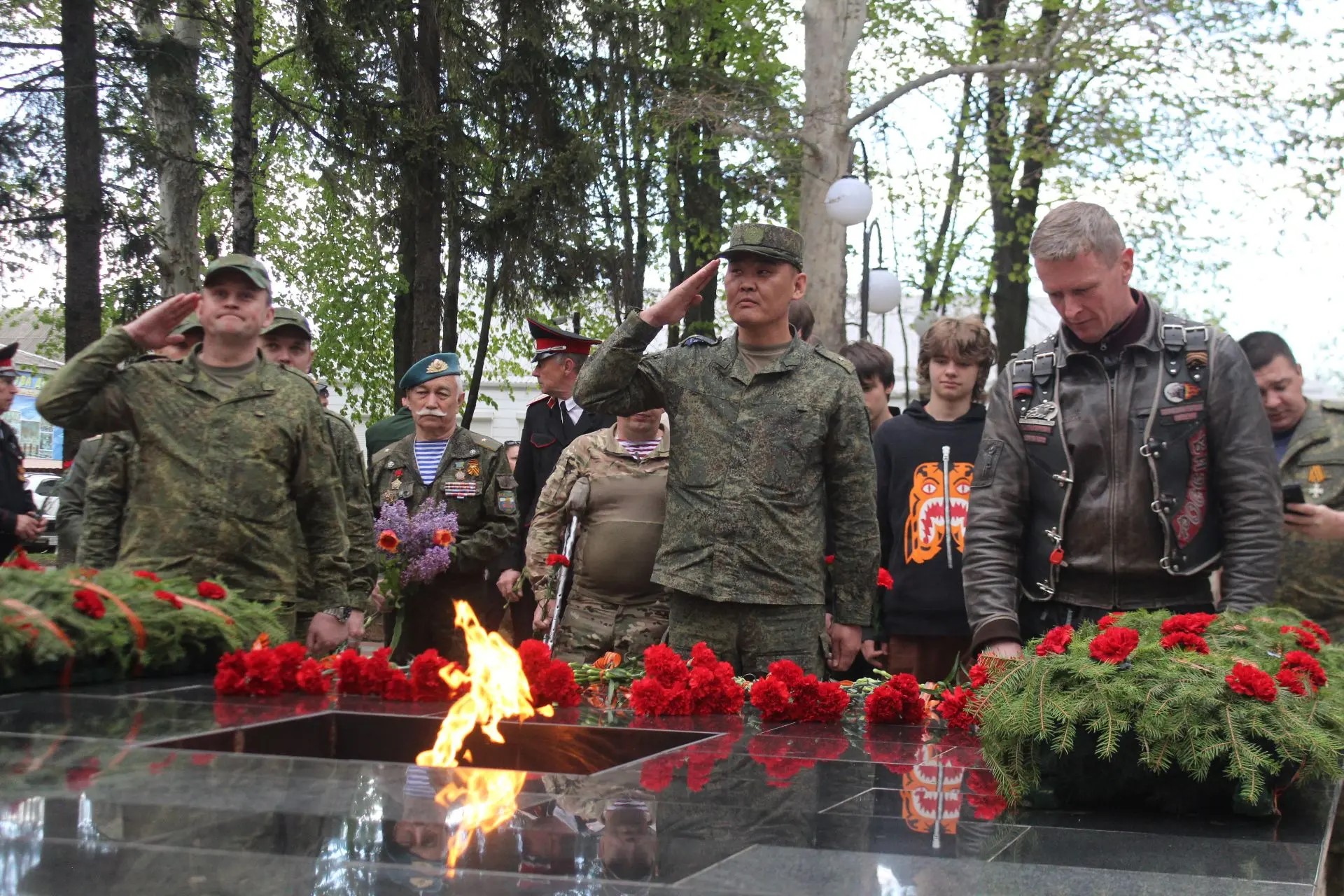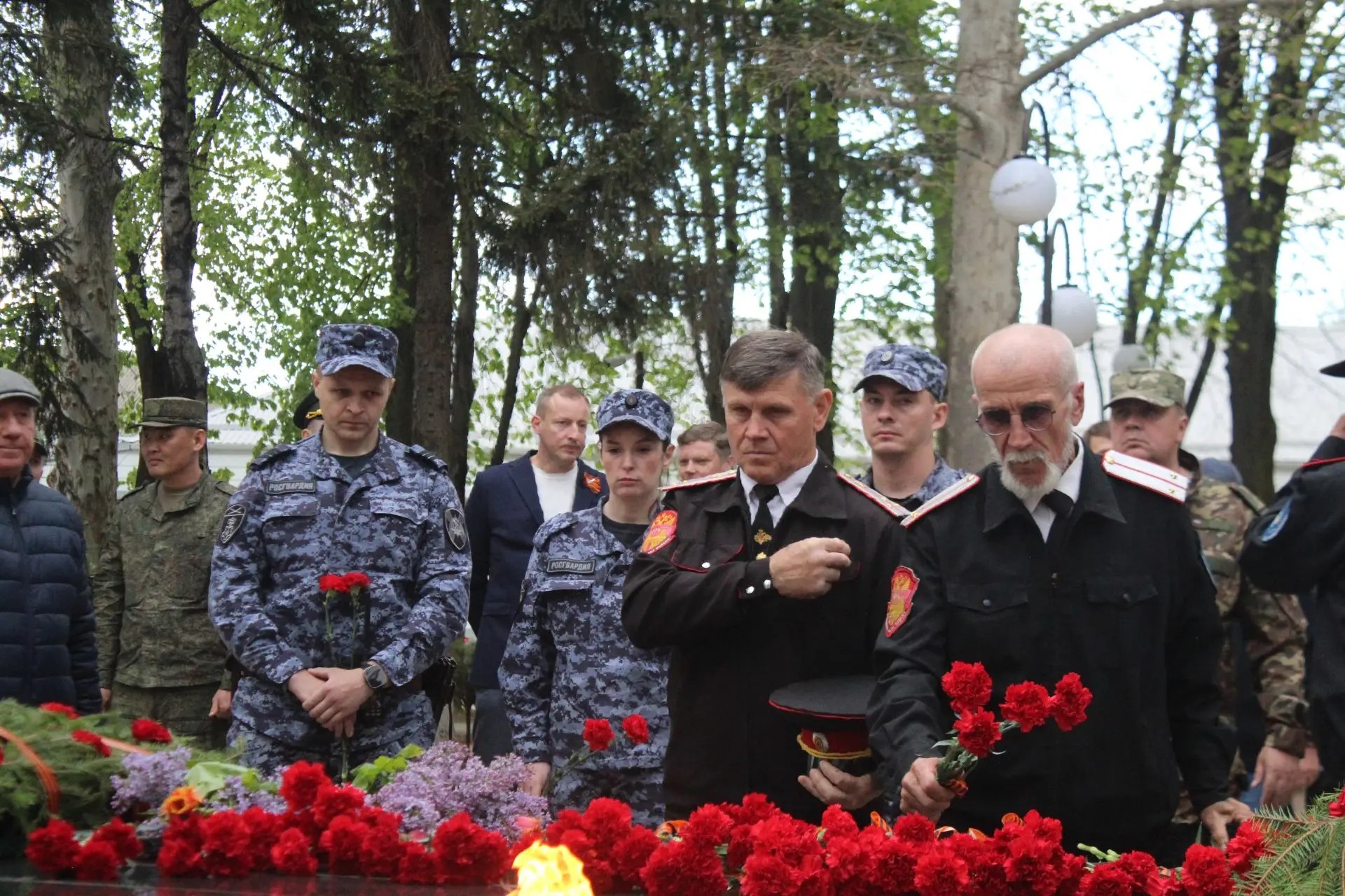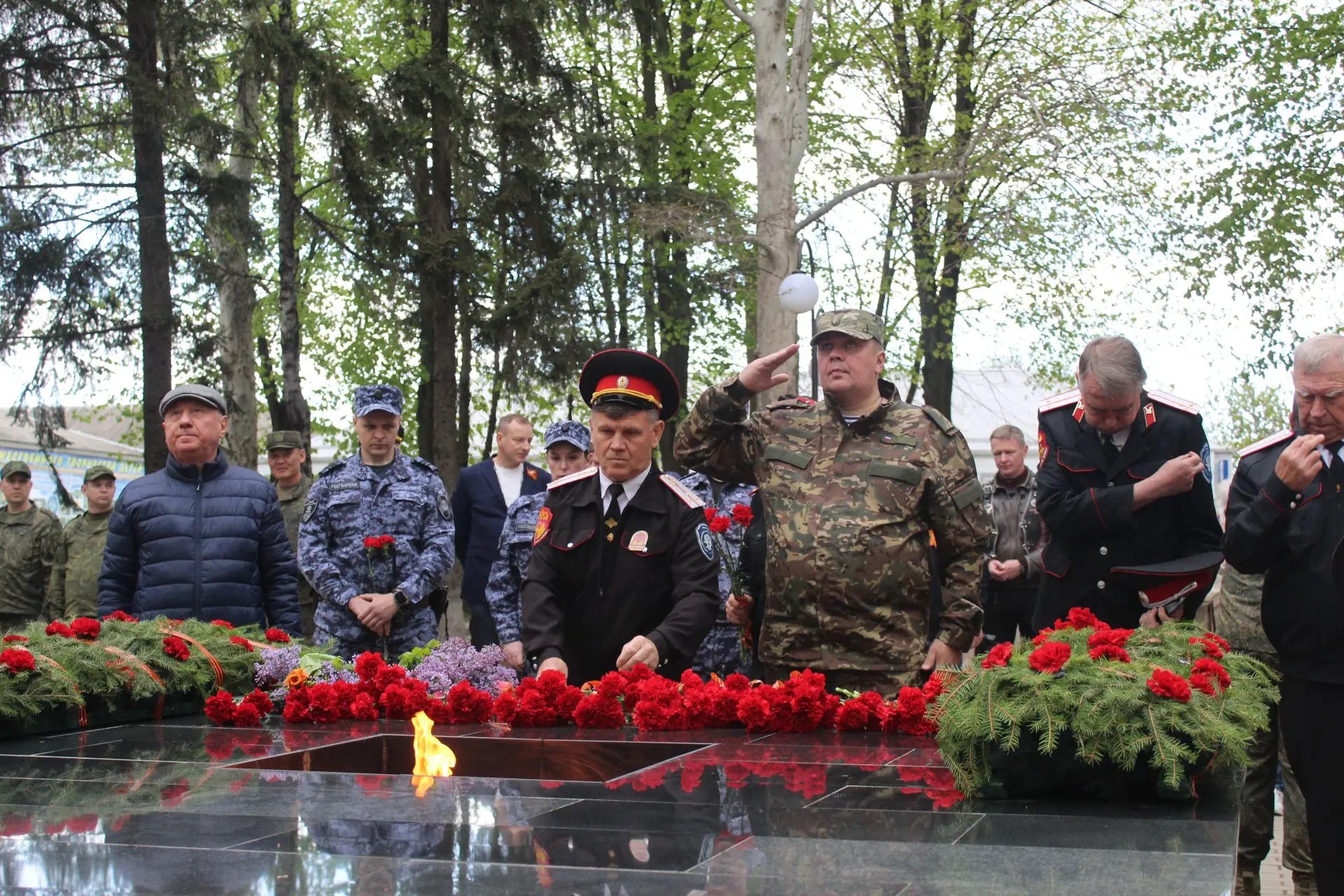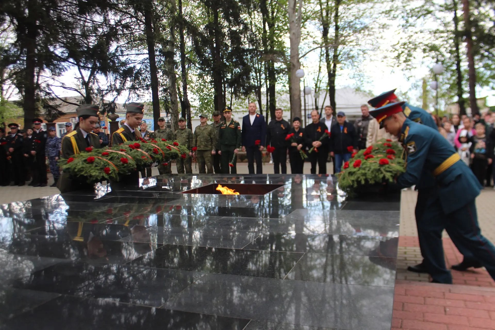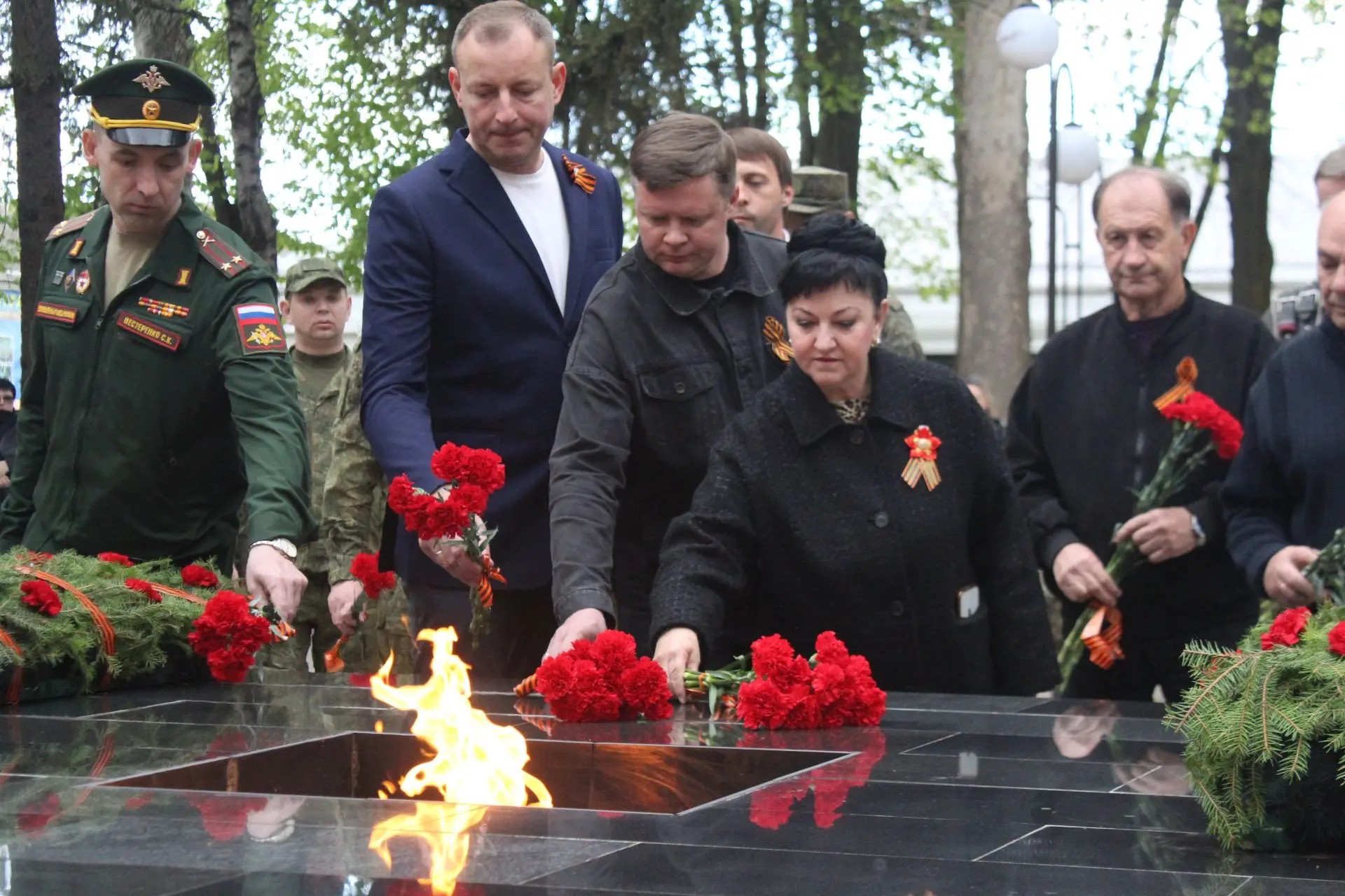 После торжественной части началась минута молчания под звуки метронома, прерванная залпами стрелкового салюта. Затем в знак скорби по ушедшим из жизни к Вечному огню началось возложение венков и цветов. В этот момент у мемориала не было разделения на официальных лиц и простых граждан - только общее чувство благодарности и памяти.