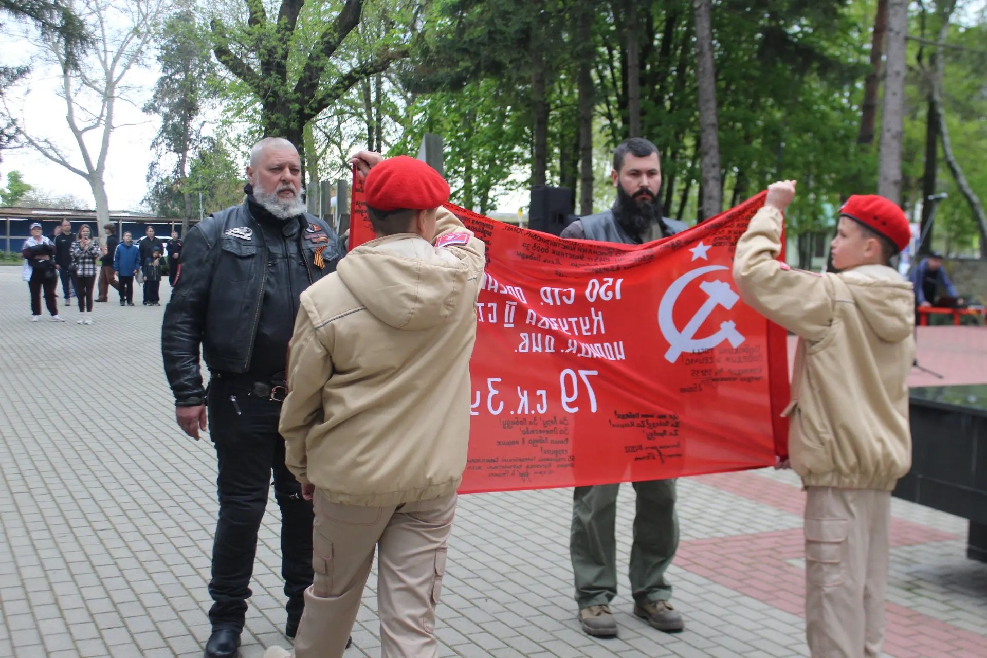 Почетное право передать копию Знамени было предоставлено юнармейцам из школы №1 им. И.Д. Бувальцева. Этот жест стал живым символом преемственности: от тех, кто сражался за Родину в сороковые, через тех, кто защищает её сегодня, - к новому поколению патриотов.