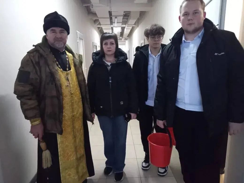 По окончании молебна студентам была предоставлена уникальная возможность вместе со священнослужителями участвовать в обряде освящения помещений предприятия крещенской водой.