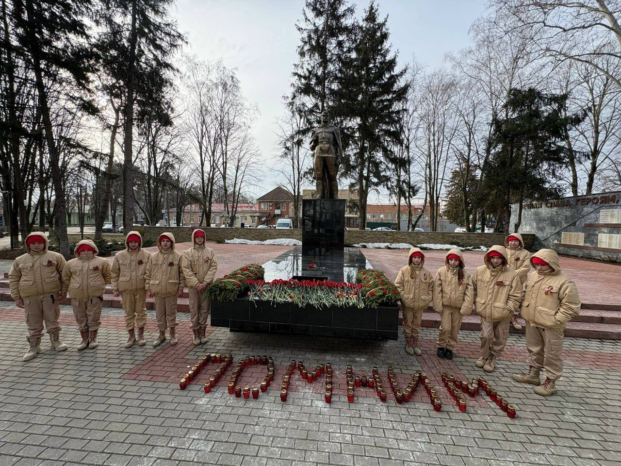 Сотрудники Молодёжного центра вместе с юнармейцами школы №1 им. И.Д.Бувальцева провели огненную инсталляцию «Помним» на мемориальном комплексе у Вечного огня в честь Дня освобождения Кореновска от немецко-фашистских захватчиков.