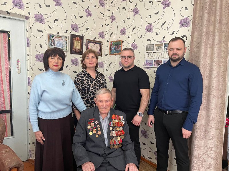 В преддверии Дня защитника Отечества молодой депутат Кореновского района Геворг Татикян вместе с представителями общественного актива Новоберезанского сельского поселения адресно поздравили участника Великой Отечественной войны, орденоносца Григория Медведева.
