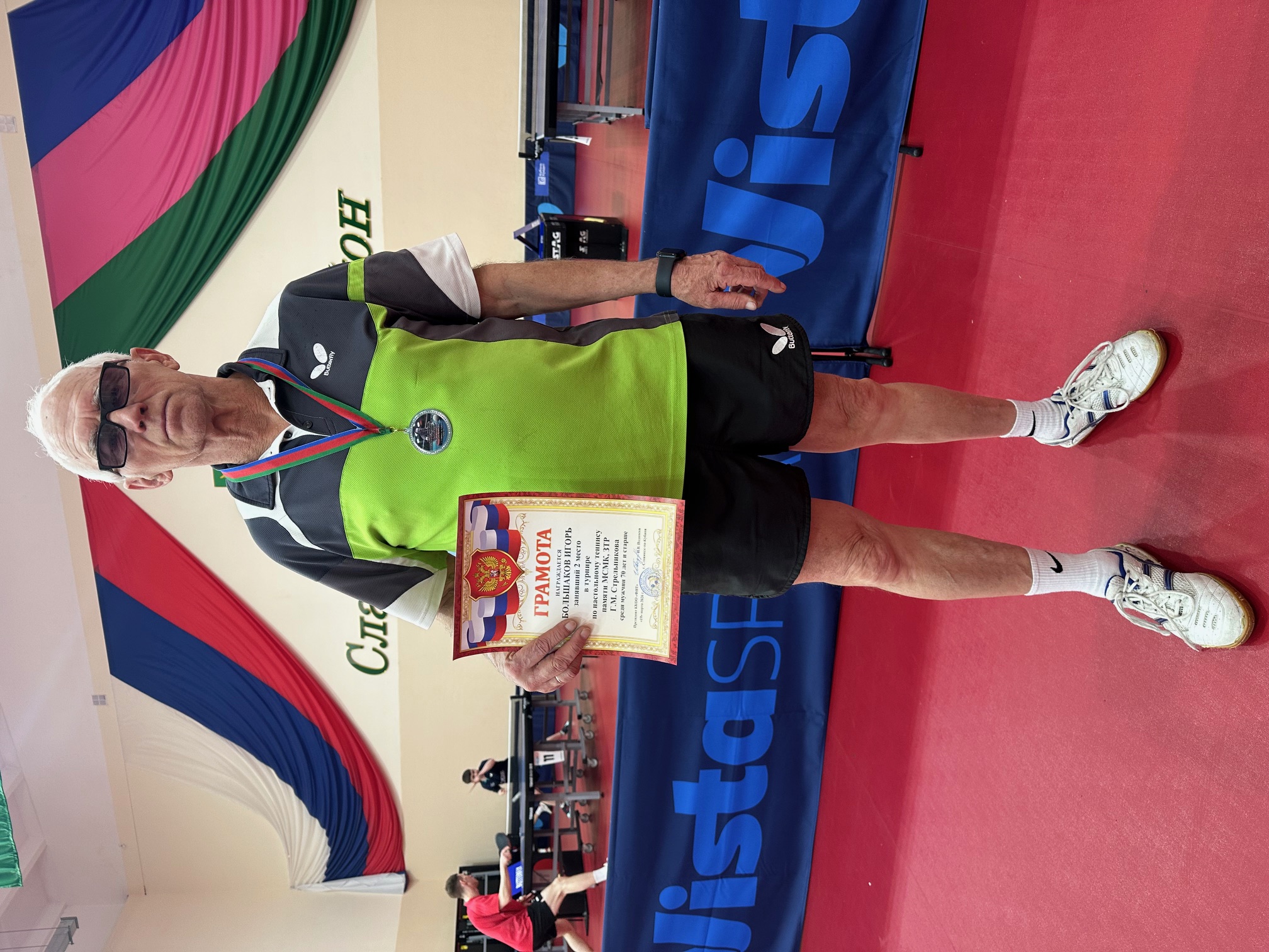 Несмотря на то, что нашему спортсмену в категории 70 лет и старше пришлось сражаться у теннисного стола одному, без поддержки земляков, Игорь Большаков выступил успешно, одержав шесть побед, и только в финале в упорной борьбе он уступил со счетом 3:2 мастеру спорта из Краснодара, завоевав серебряную награду турнира, и вошел в сборную команду Краснодарского края по настольному теннису среди игроков-ветеранов своего возраста, которая уже через месяц начнет подготовку к главному турниру сезона.