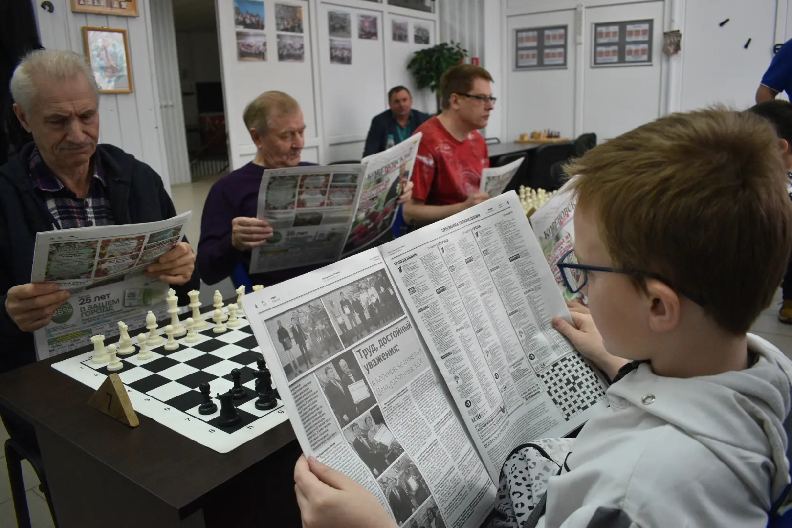 Невероятно занимательная игра в шахматы и чтение интересной газеты "Кореновские вести" - это прекрасно проведённый воскресный день!