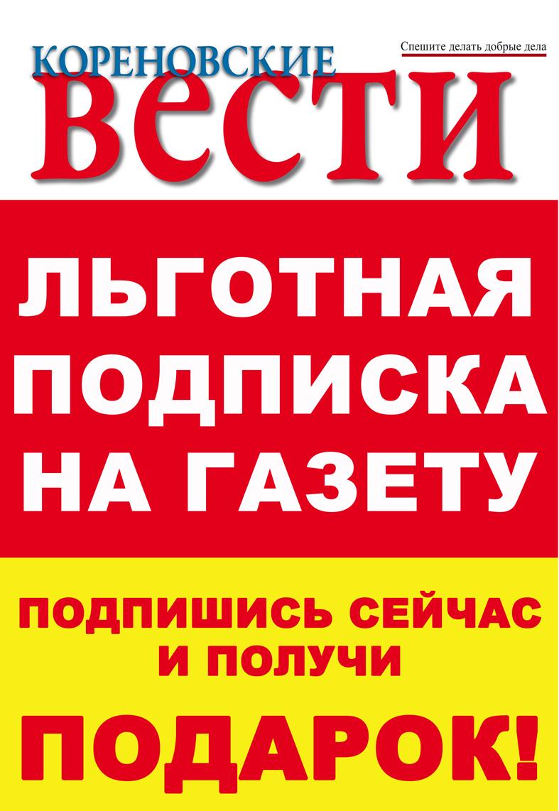 Внимание! Из-за дождливой погоды день подписчика на "районку" состоится в редакции газеты "Кореновские вести" по адресу: город Кореновск, улица Красная, 83.